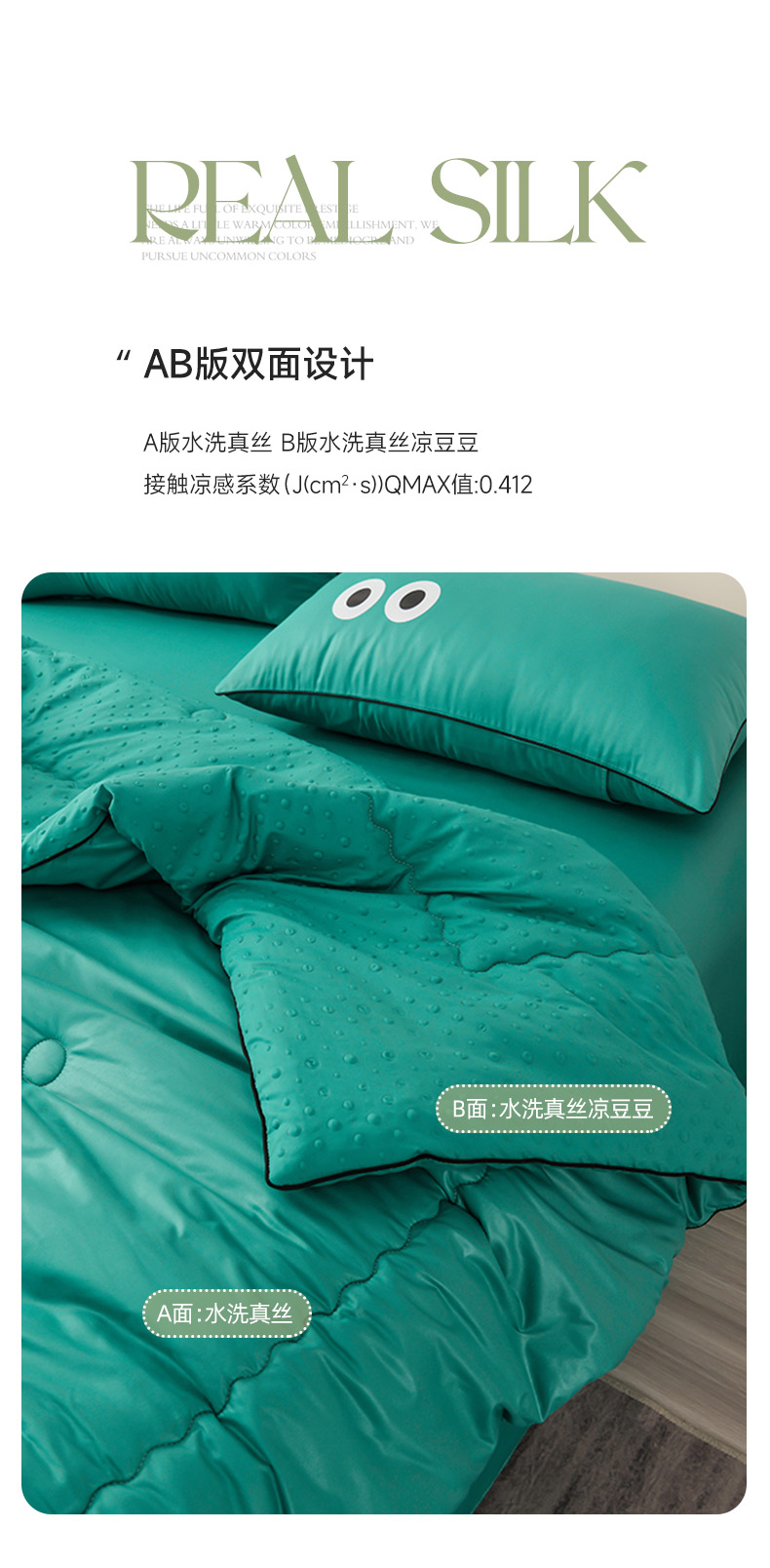 • 91家纺网 家纺一手货源 找家纺 艾兜坊 2024新款水洗真丝大豆被空调被夏被小煤球系列 小煤球-云川绿
