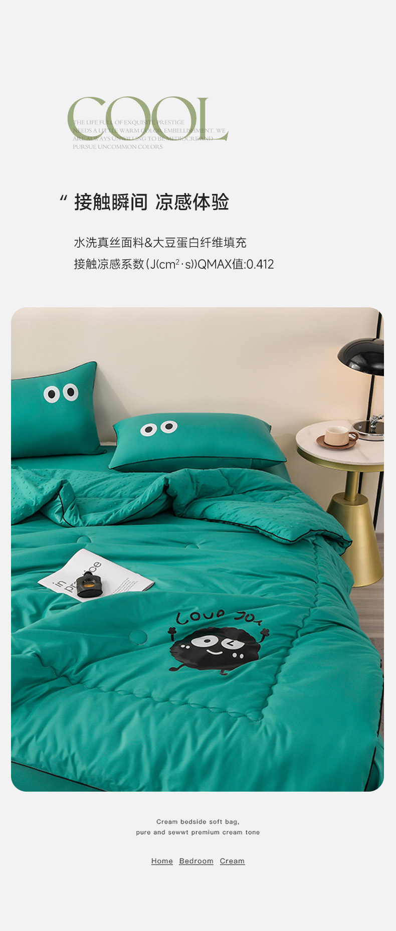 当前位置: 91家纺网 > 商品网购 > 被子 > 夏被 > 艾兜坊 2024新款水洗真丝大豆被空调被夏被小煤球系列 小煤球-云川绿