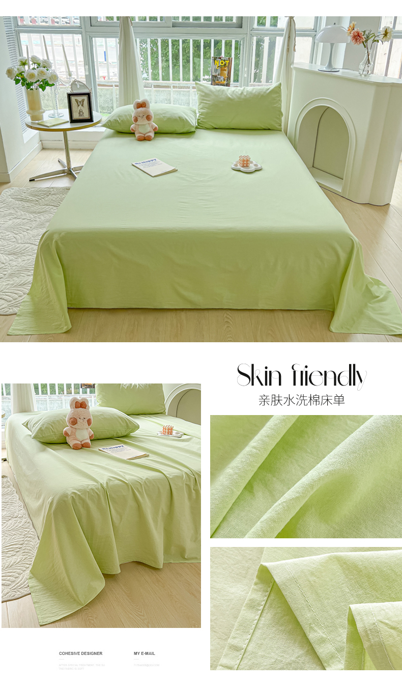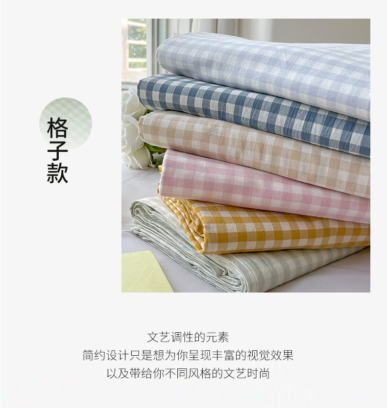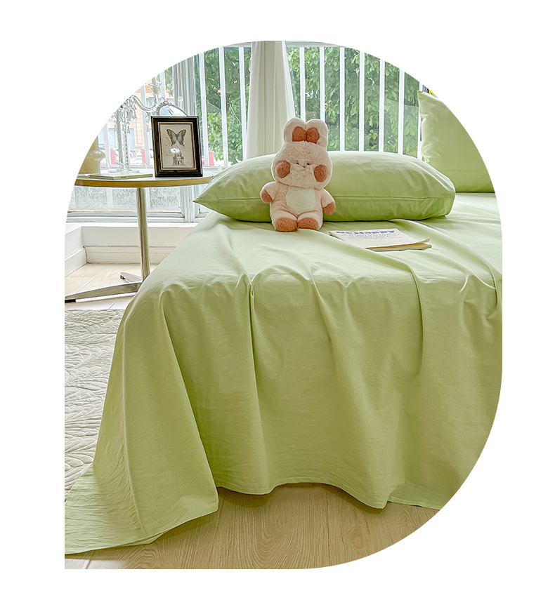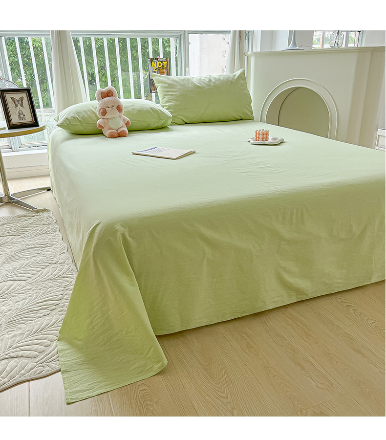 盼季家纺 2024新款简约格子纯色水洗棉床单单件宿舍被单三件套 果绿