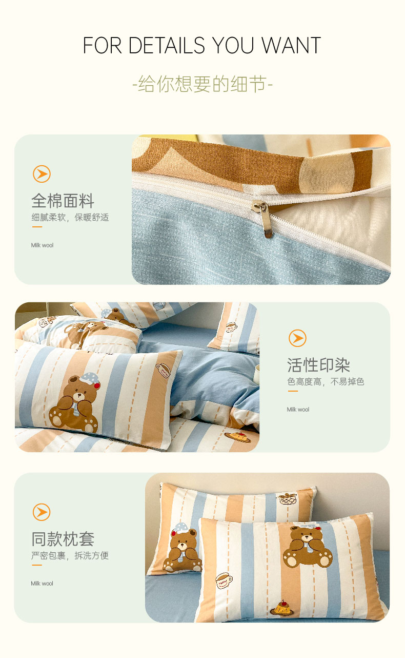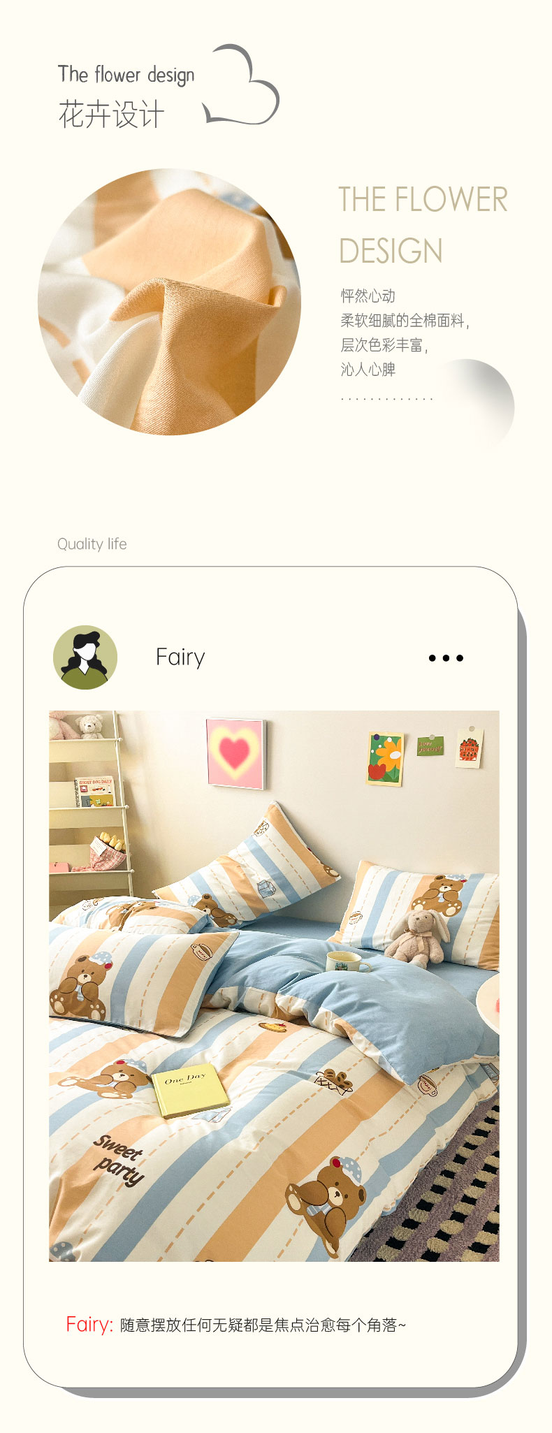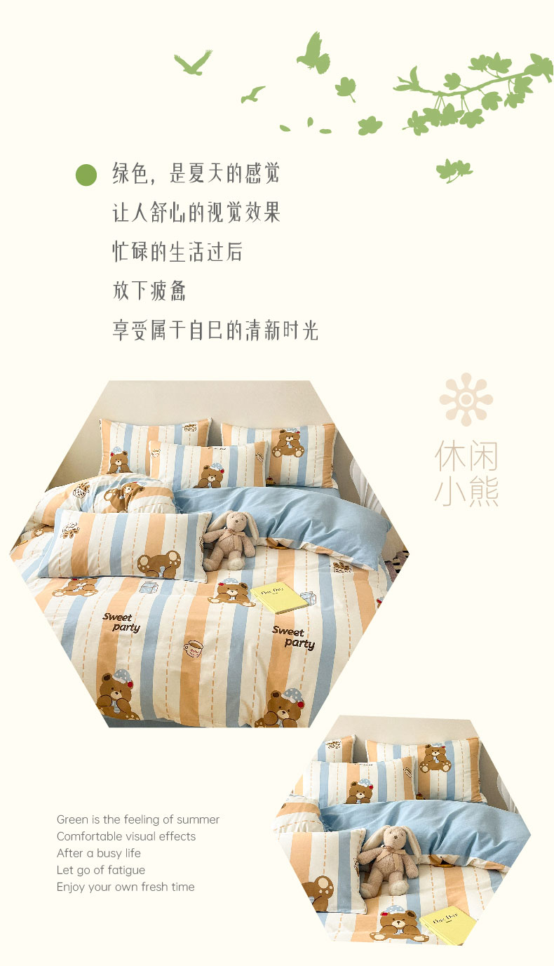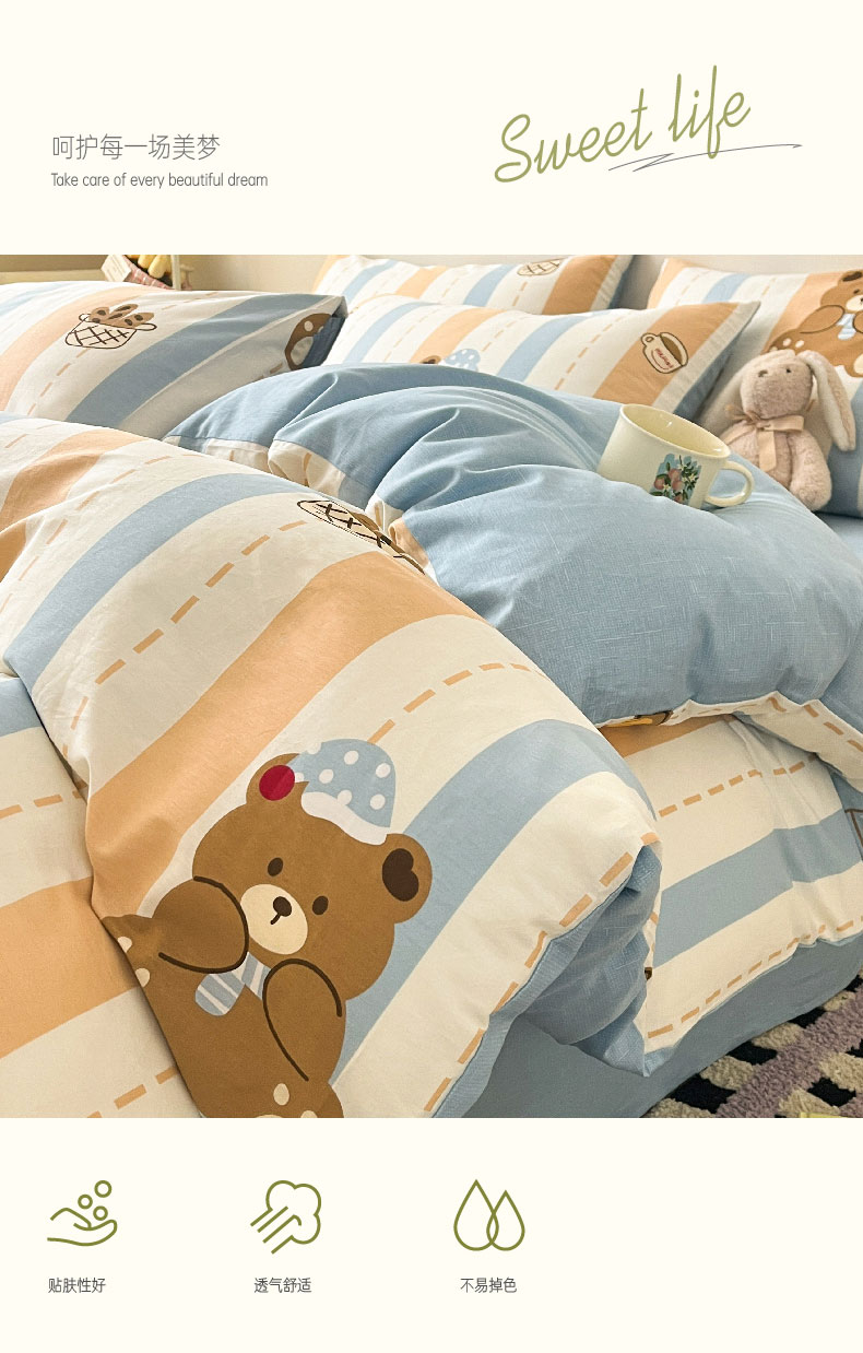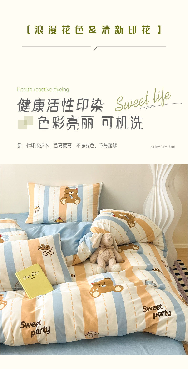 红馆 2025年全棉12868印花系列四件套 休闲小熊