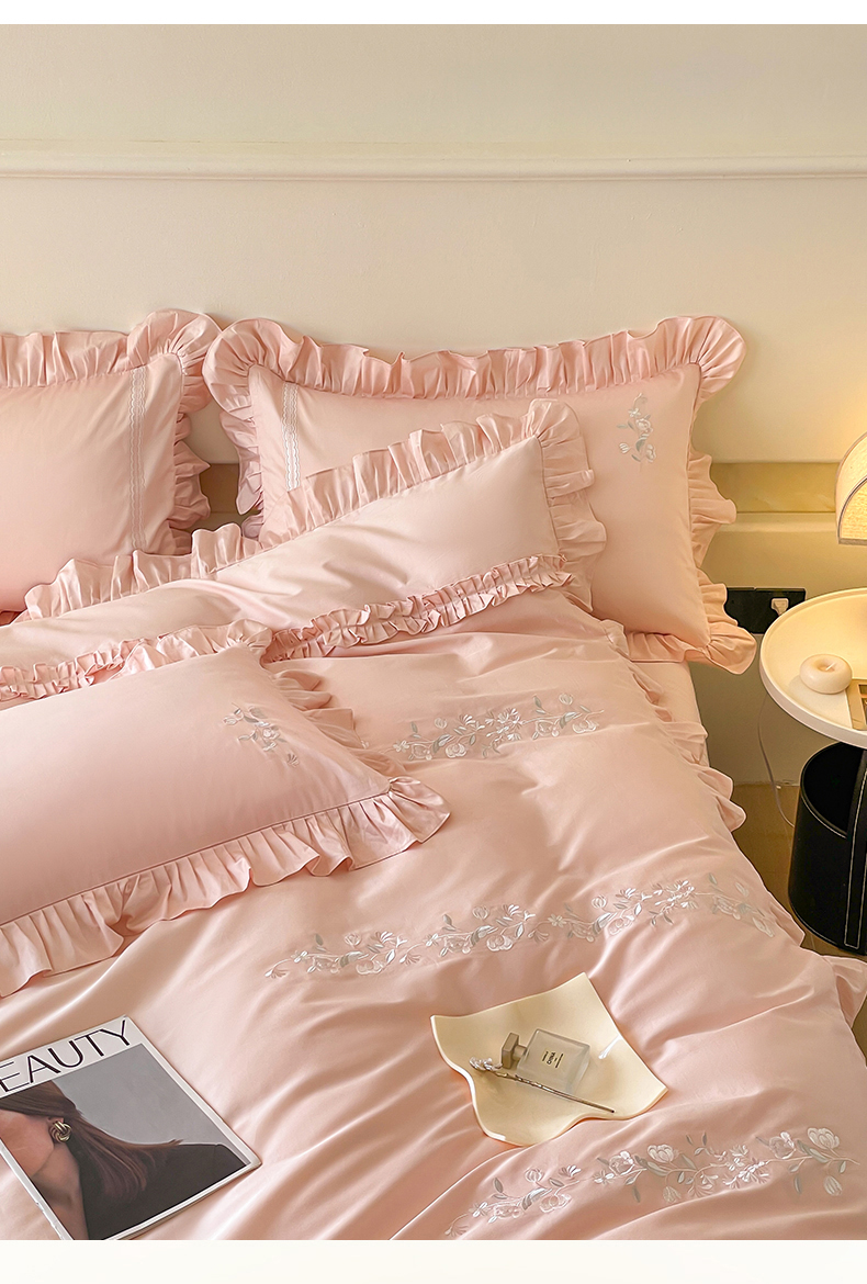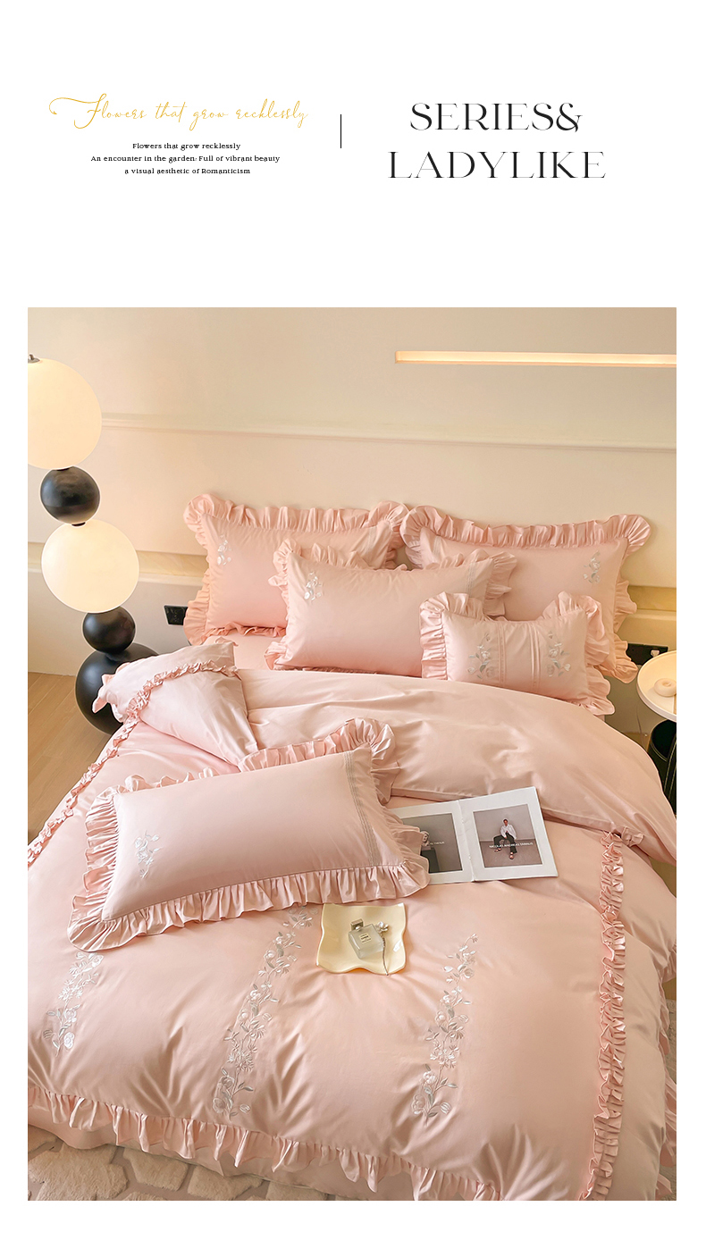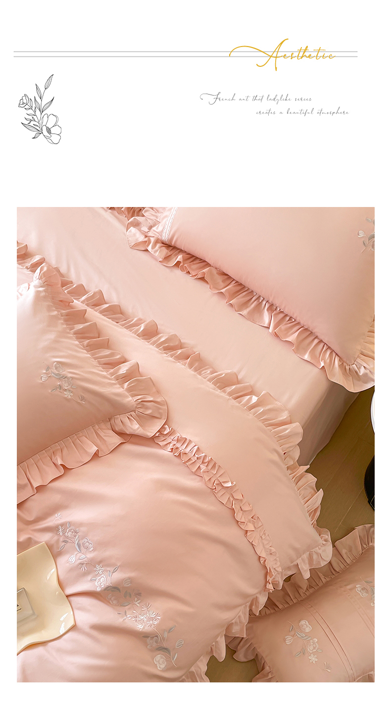 蓝米卡夫 2024新品-全棉淑女风刺绣花边高定工艺款 淑女风-清纯粉玉