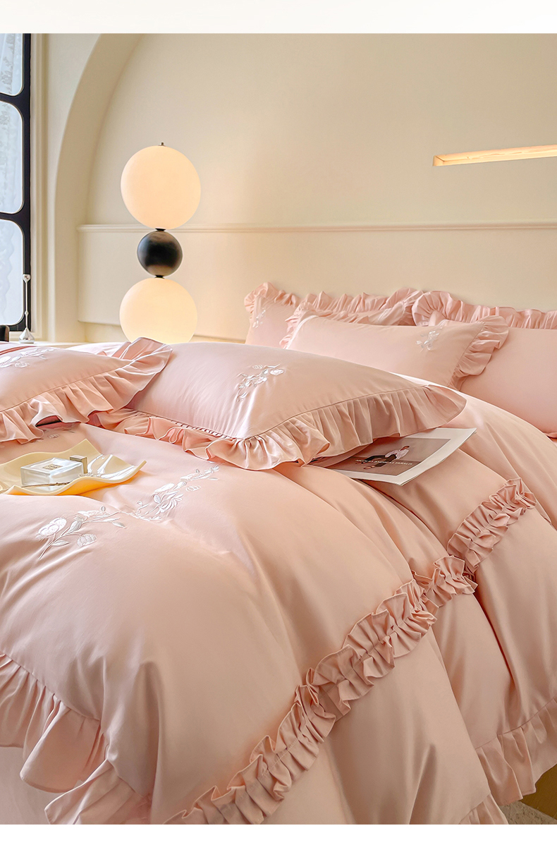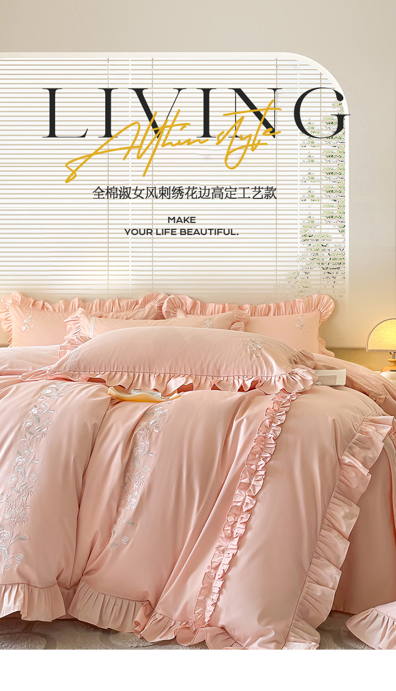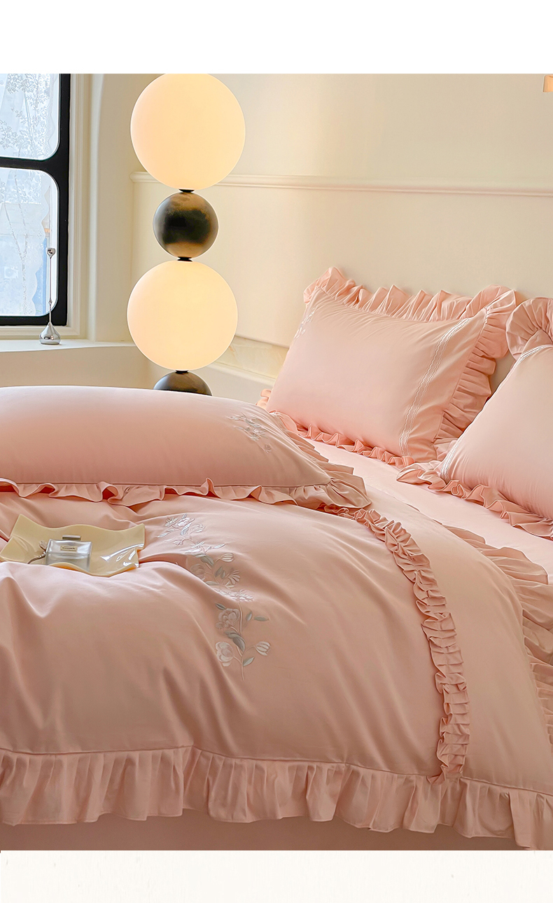 蓝米卡夫 2024新品-全棉淑女风刺绣花边高定工艺款 淑女风-清纯粉玉