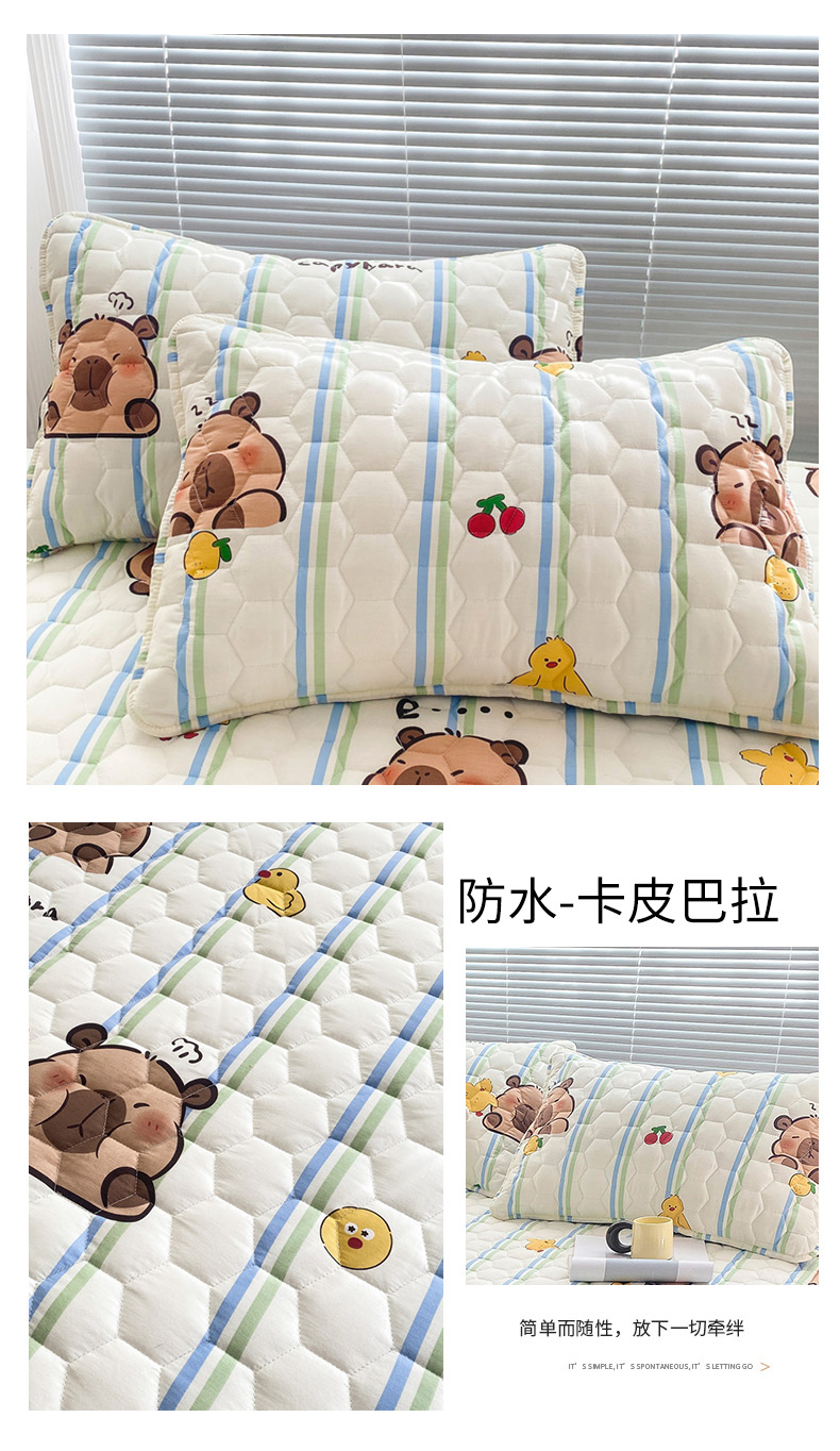 九亭家纺 2024新款全棉夹棉防口水防头油枕套 防水-卡皮巴拉