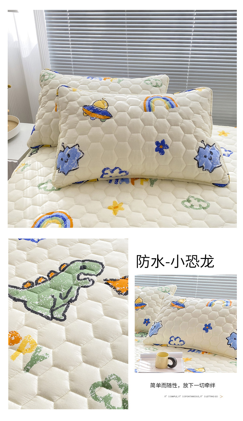 商品名称: 九亭家纺 2024新款全棉夹棉防口水防头油枕套 防水-小恐龙