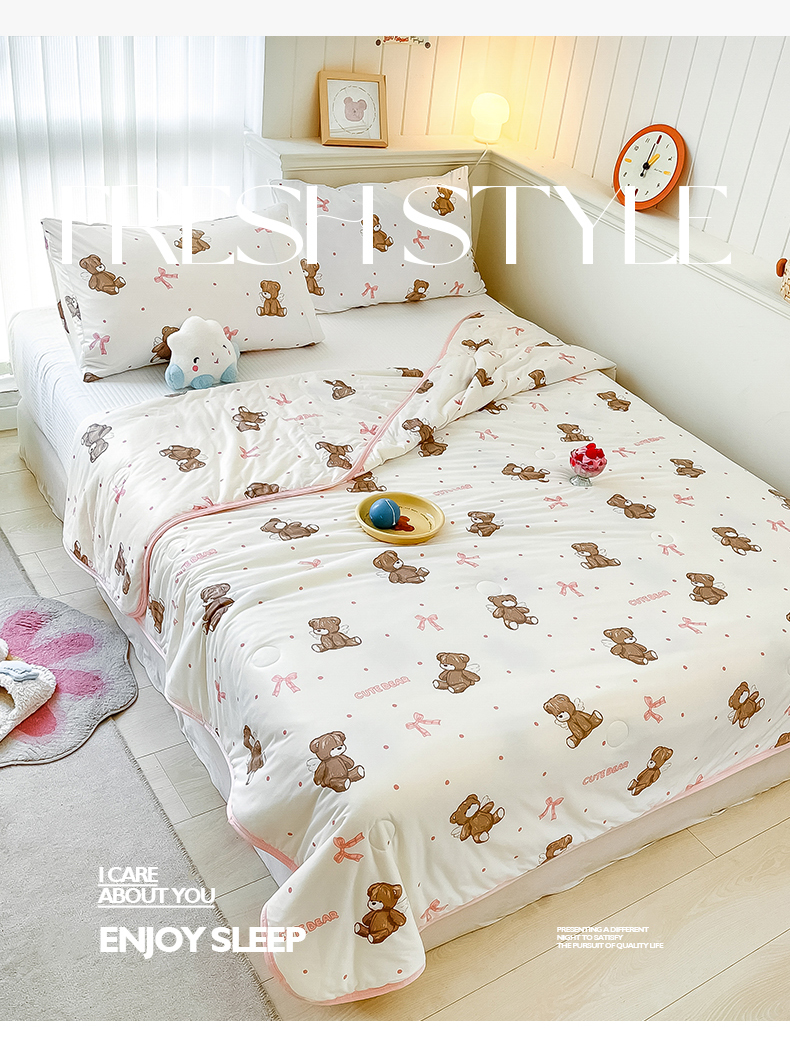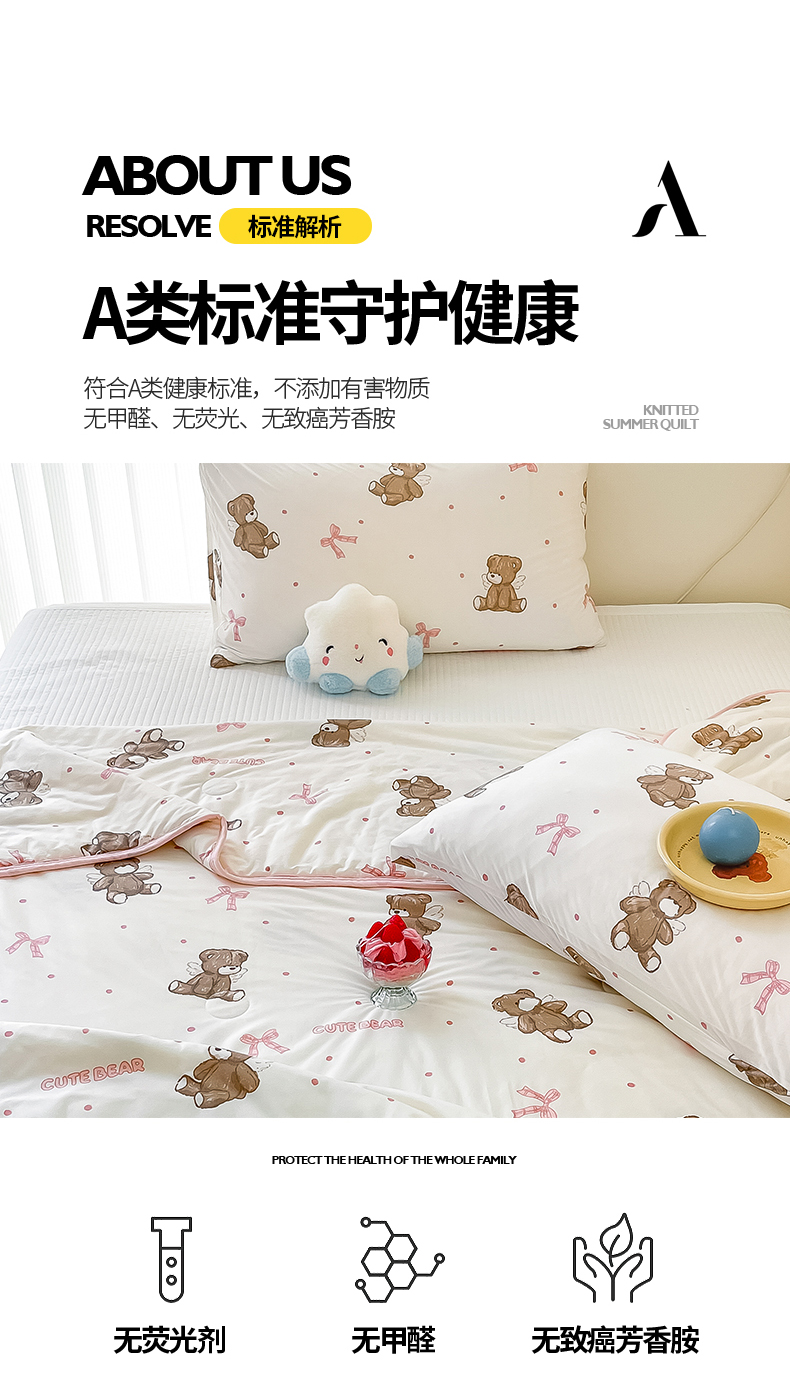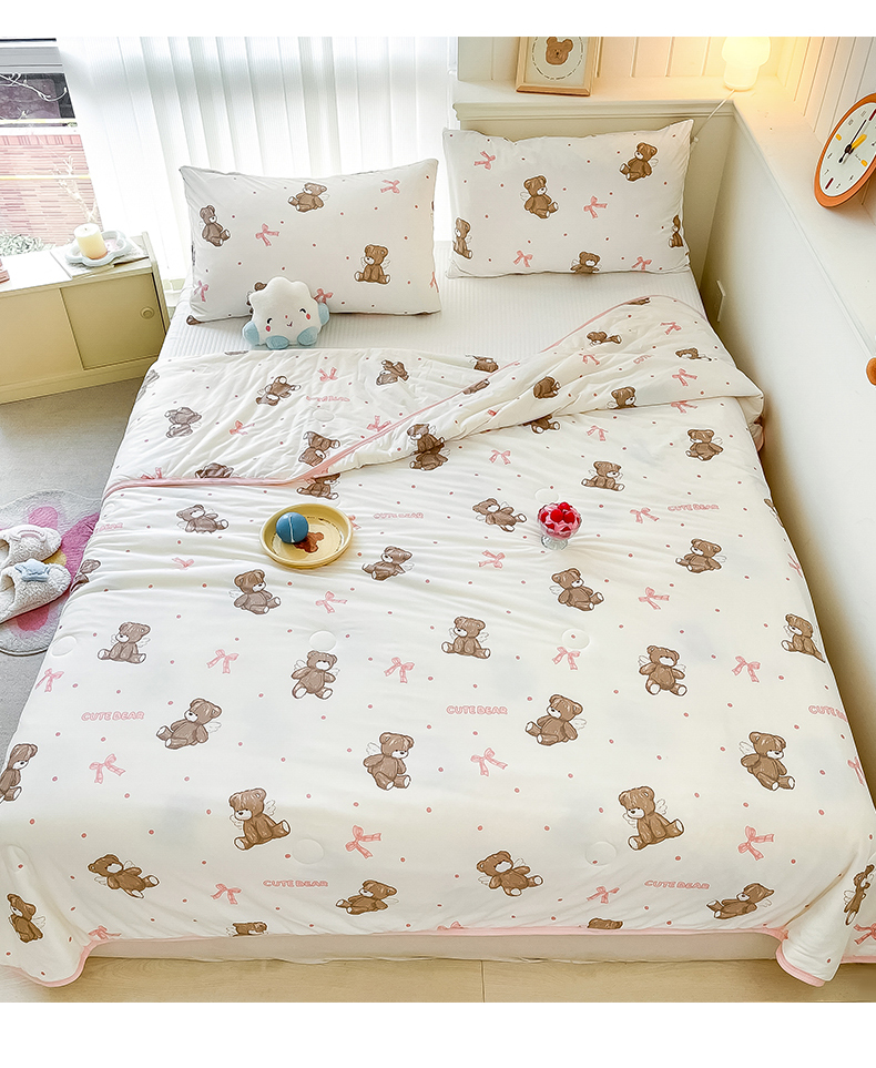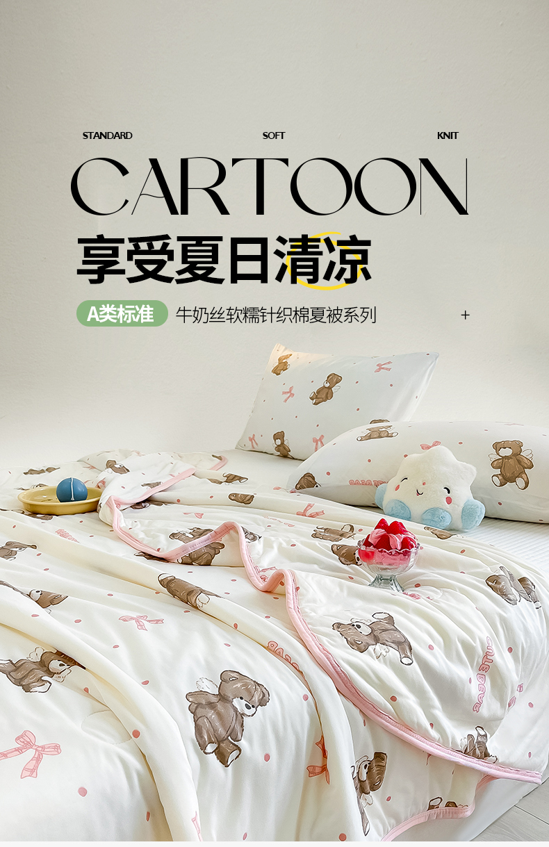 商品名称:桃子家居 2024新款A类高品质牛奶丝软糯针织棉夏被 针织棉-幸运萌萌熊