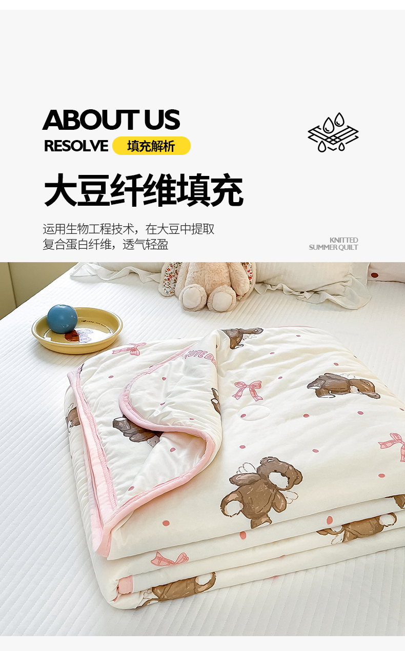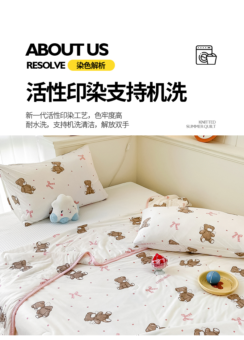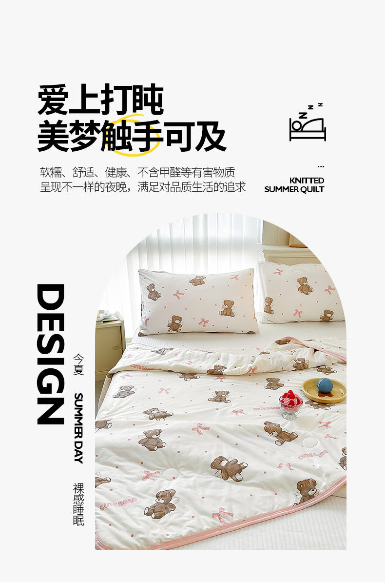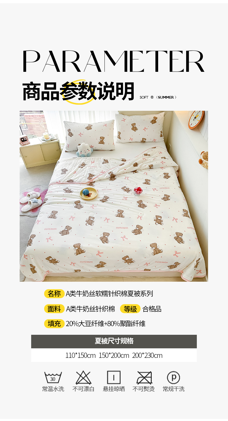 商品名称:桃子家居 2024新款A类高品质牛奶丝软糯针织棉夏被 针织棉-幸运萌萌熊