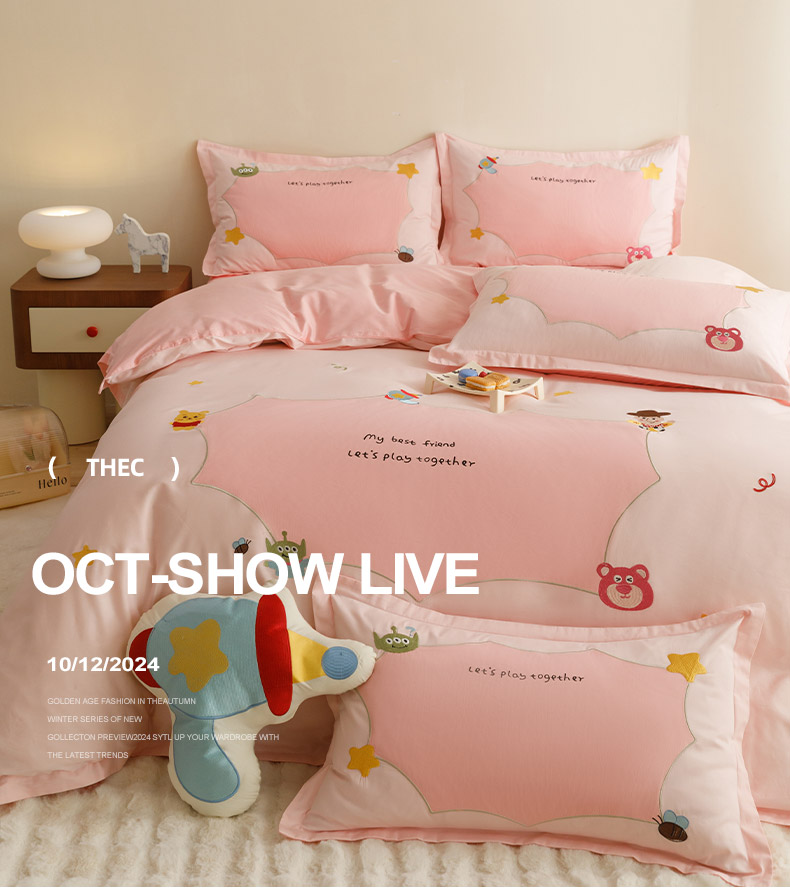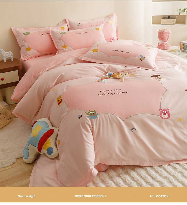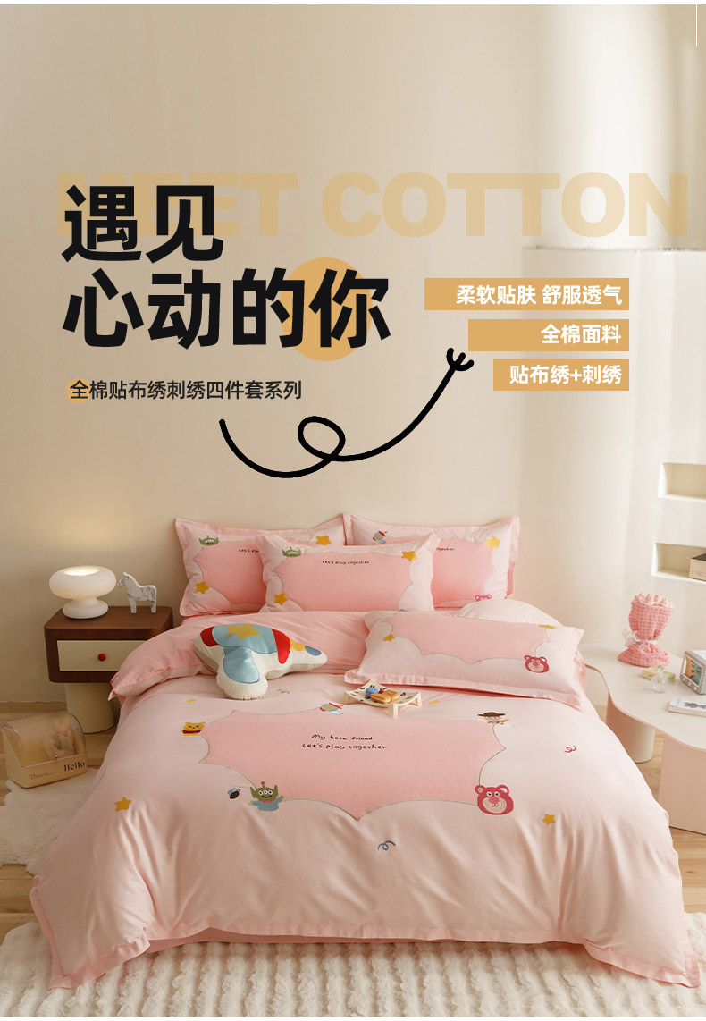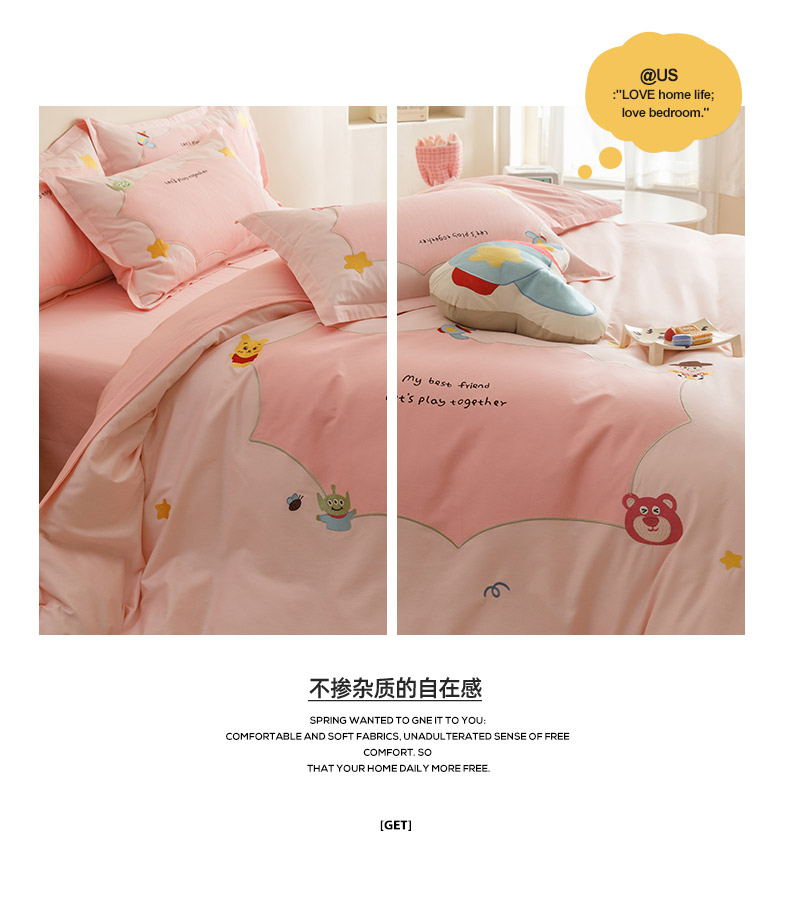 欧冠家纺 2024新款全棉床笠绣花卡通刺绣四件套巴斯光年系列 巴斯光年-粉玉
