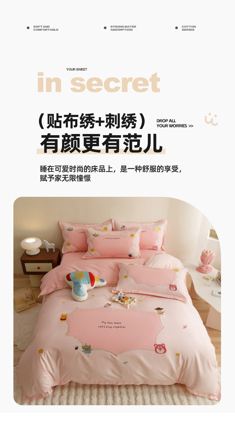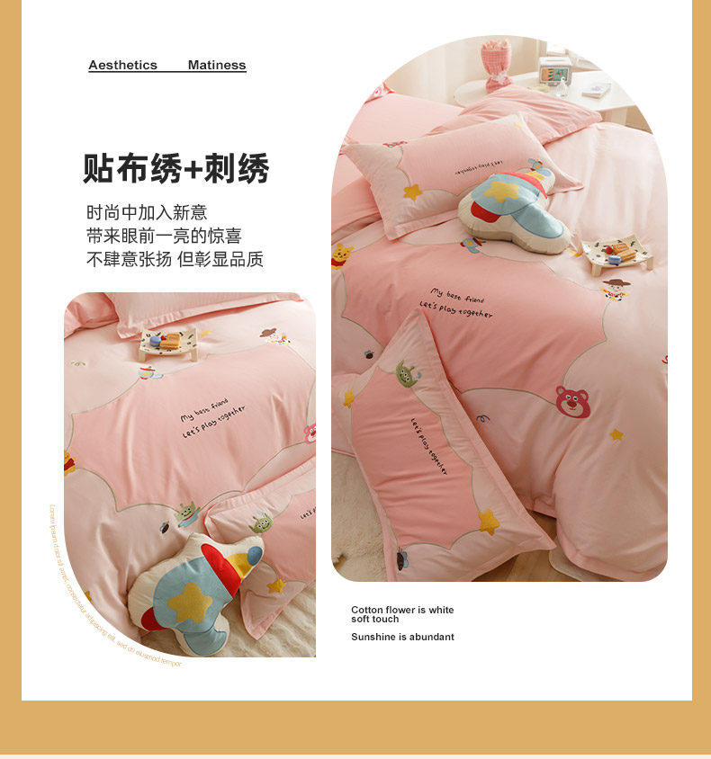 商品名称:欧冠家纺 2024新款全棉床笠绣花卡通刺绣四件套巴斯光年系列 巴斯光年-粉玉