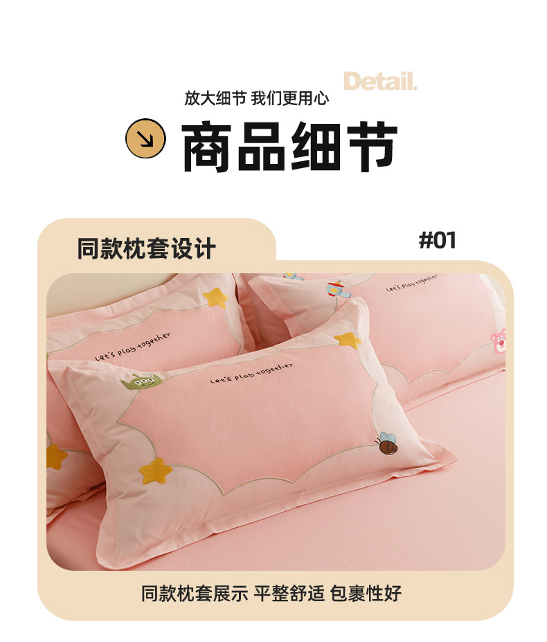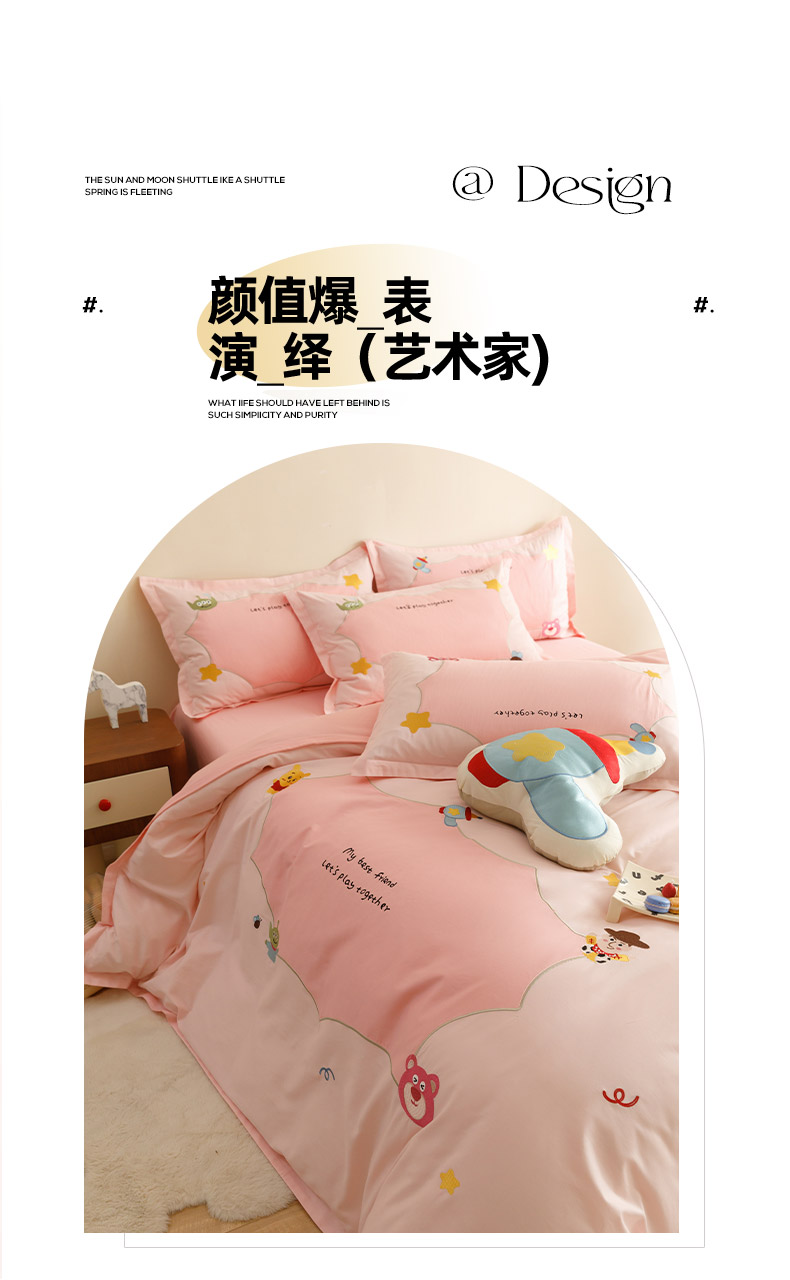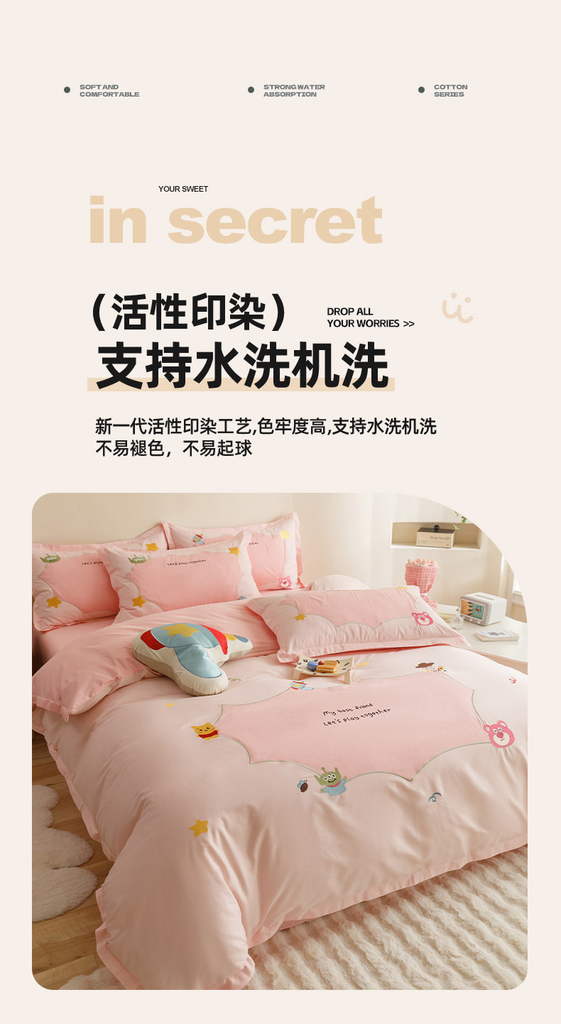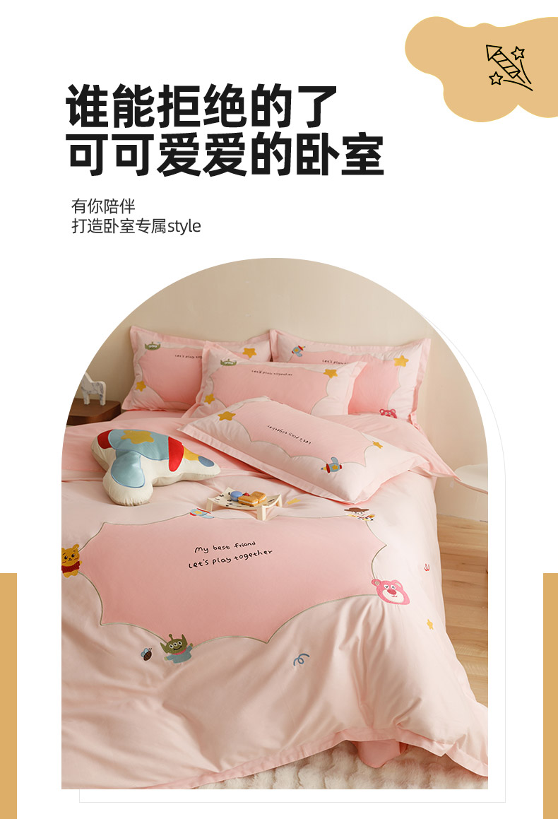 商品名称:丝印良品 2024新款全棉床笠绣花卡通刺绣四件套巴斯光年系列 巴斯光年-粉玉