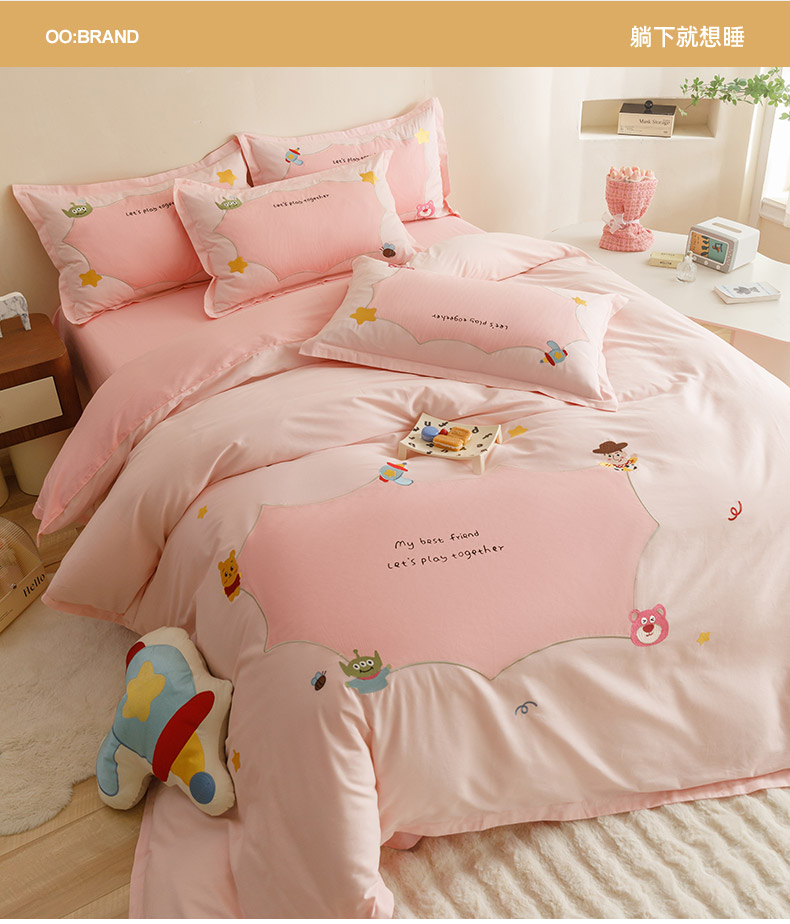 丝印良品 2024新款全棉床笠绣花卡通刺绣四件套巴斯光年系列 巴斯光年-粉玉