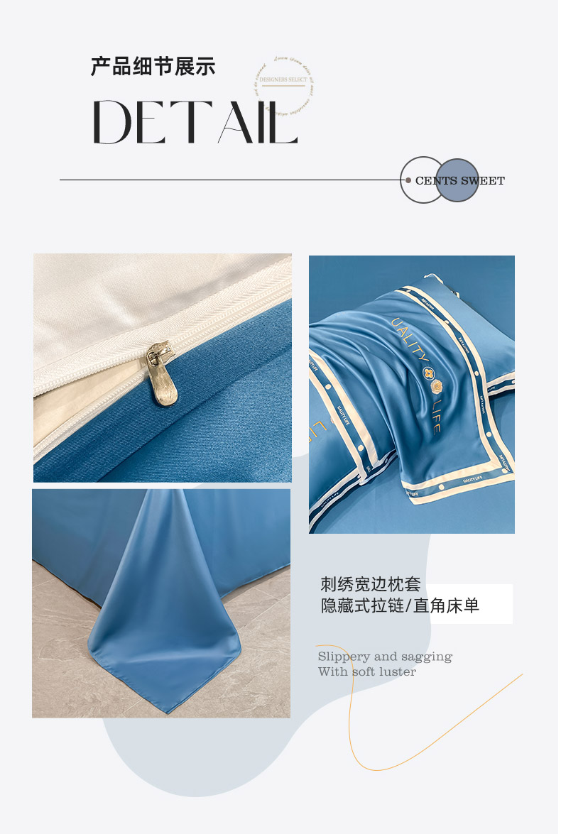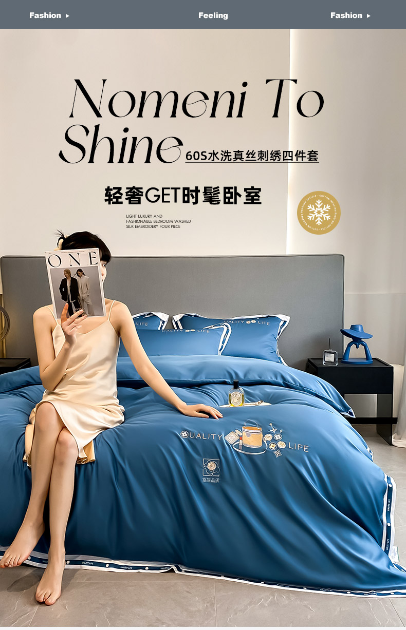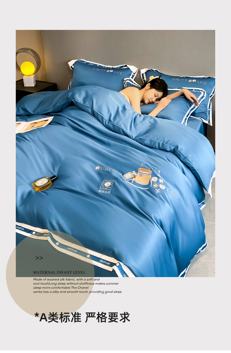 商品名称:欧冠家纺 2024新款大牌风60S水洗真丝刺绣床笠被套四件套香奈系列 香奈-宾利蓝