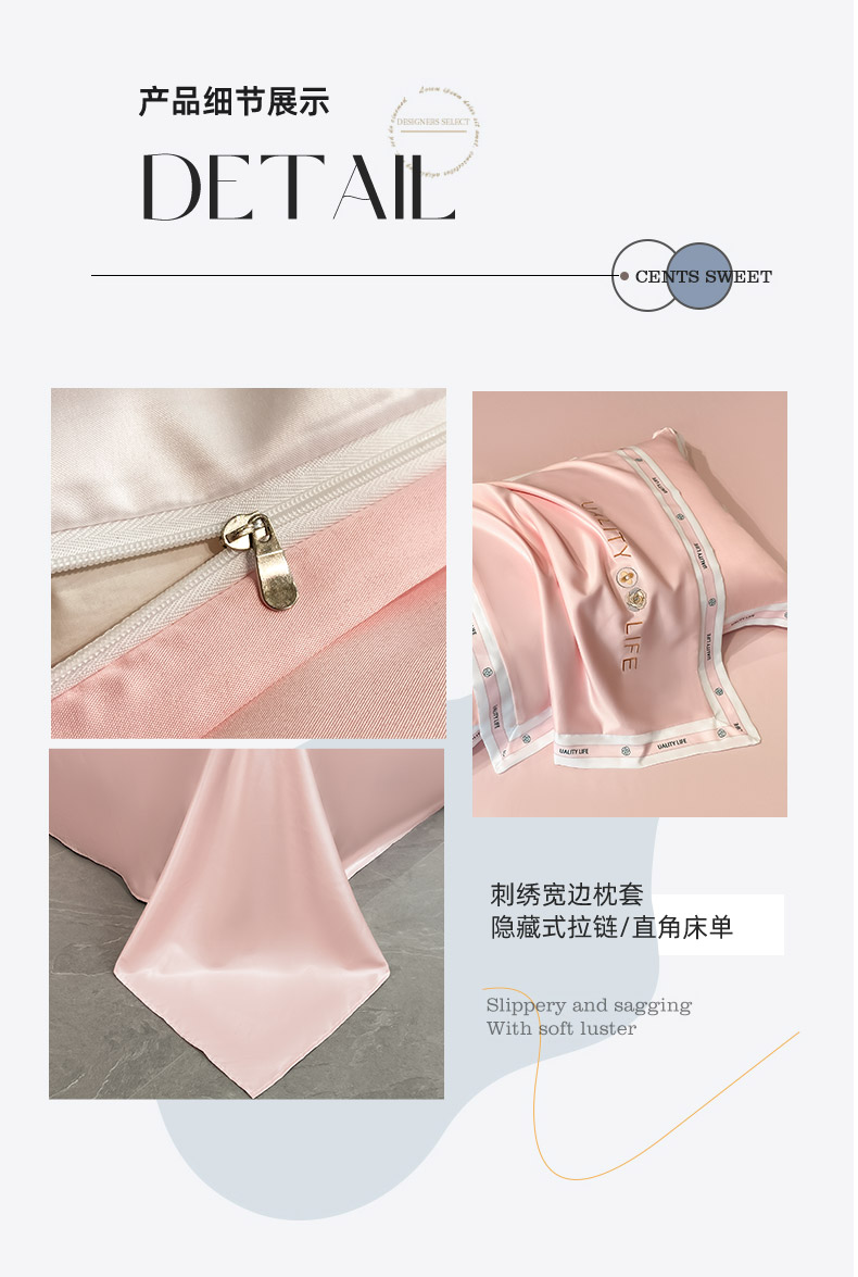当前位置: 91家纺网 > 商品网购 > 床品套件 > 四件套 > 真丝四件套 > 绒世界 绒世界 2025新款大牌风60S水洗真丝刺绣床笠被套四件套香奈系列 香奈-优雅粉