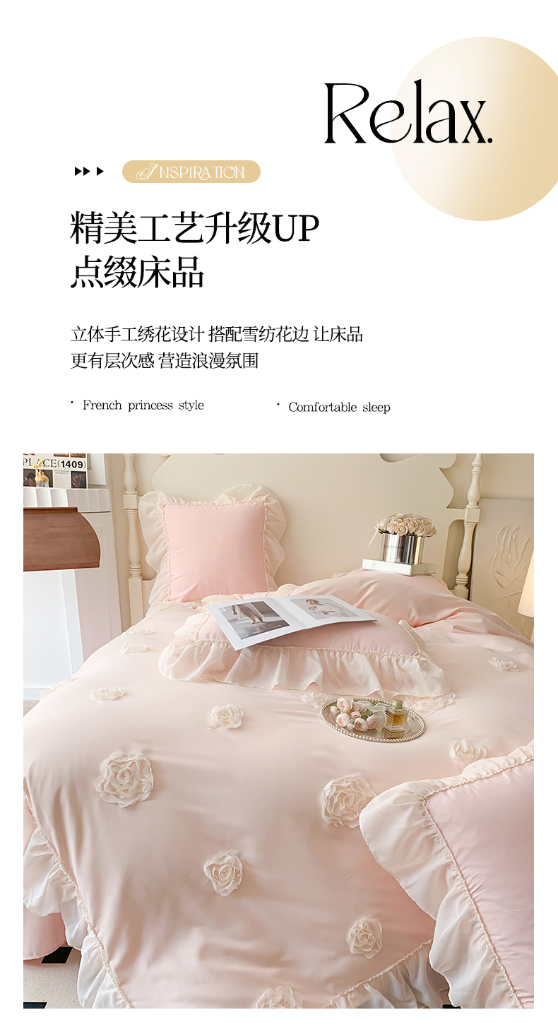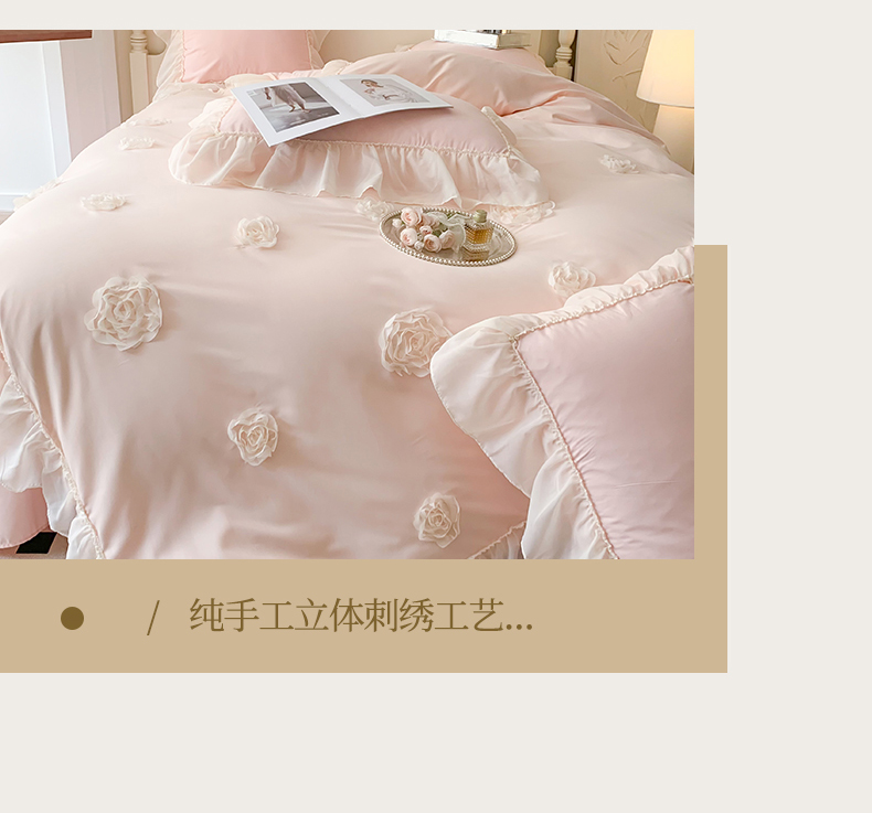 (总)吾欢心 2025秋冬新款加厚雕花绒婴儿绒安娜贝尔系列法式双层花边四件套,安娜贝尔白,安娜贝尔粉,安娜贝尔咖,安娜贝尔蓝,安娜贝尔绿,安娜贝尔紫