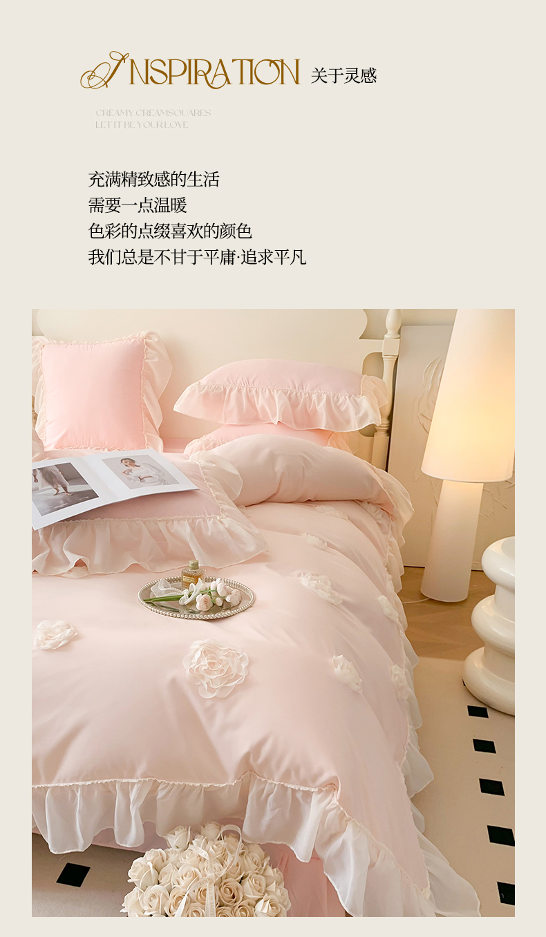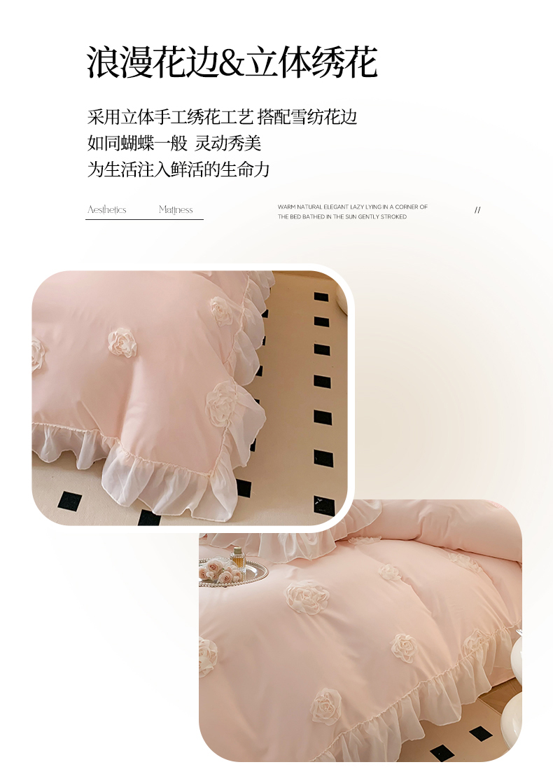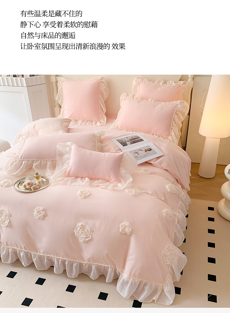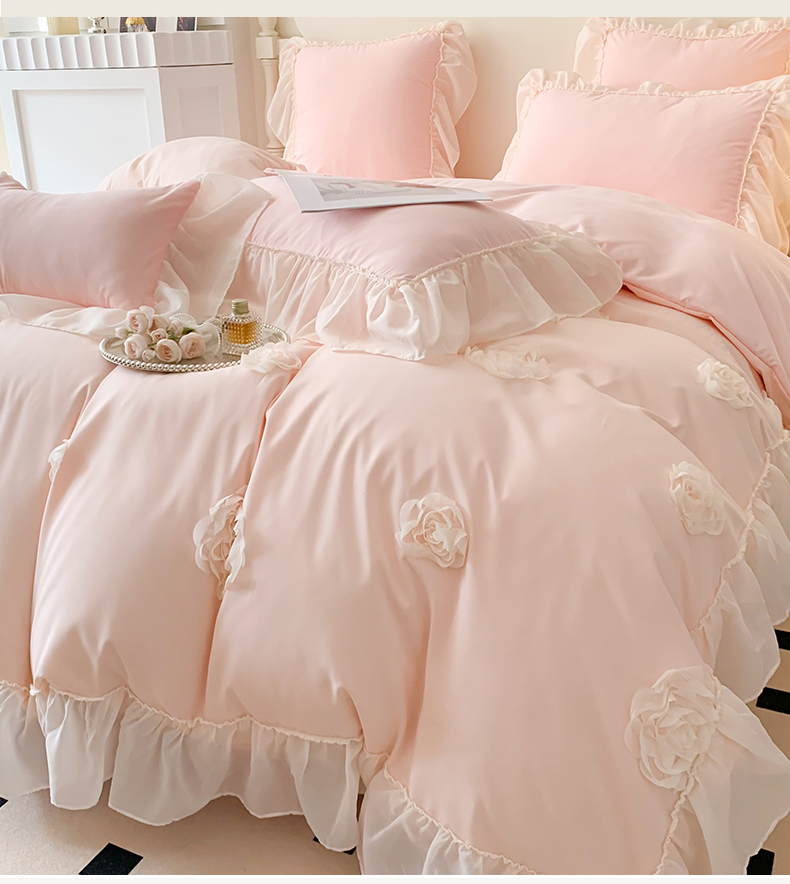 商品名称:吾欢心 2025新款糯小棉四件套-伊莉莎 伊莉莎粉