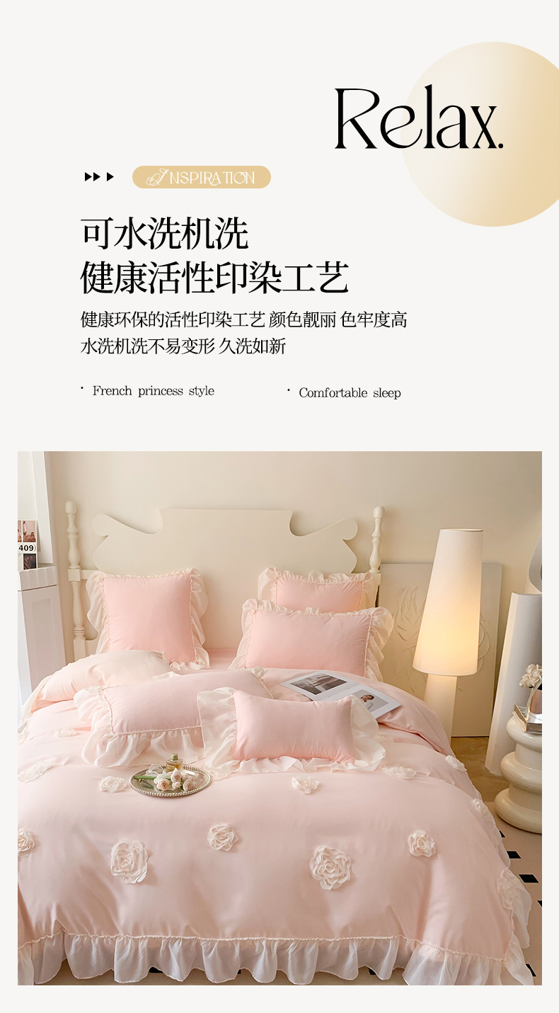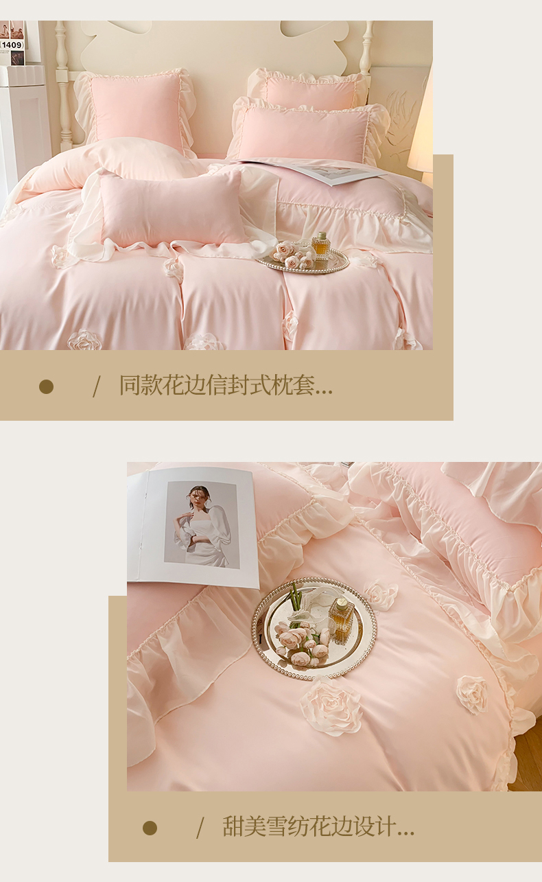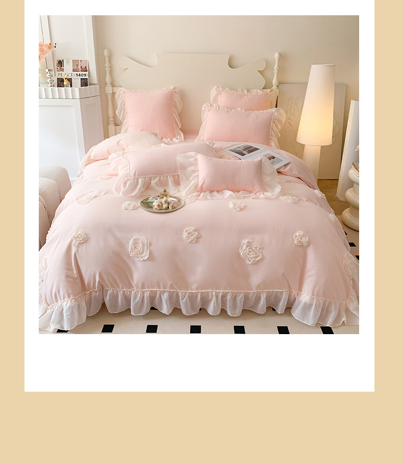 商品名称:吾欢心 2025新款糯小棉四件套-伊莉莎 伊莉莎粉