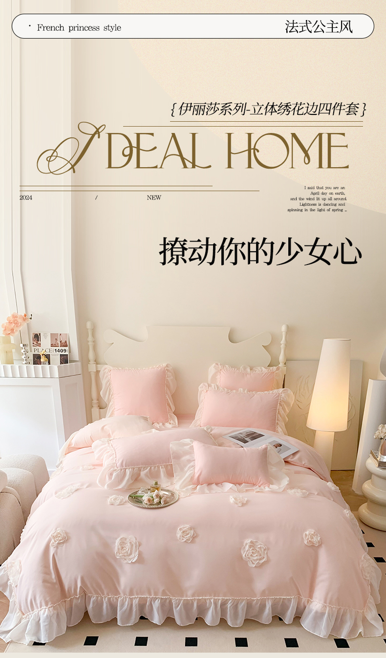(总)吾欢心 2026秋冬新款公主风加厚高克重全消光婴儿绒四件套爱莉丝系列新年安可拉红,爱莉丝奶油粉,爱莉丝安可拉红,爱莉丝优雅白