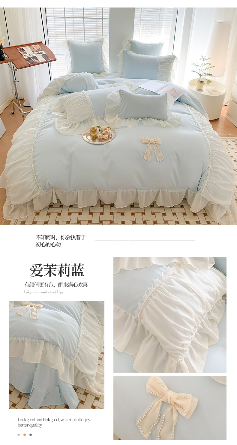 (总)吾欢心 2025新款公主风雪纺边四季通用夹棉床盖,床盖白,床盖粉,床盖黄,床盖咖,床盖绿,床盖抹茶绿,床盖紫
