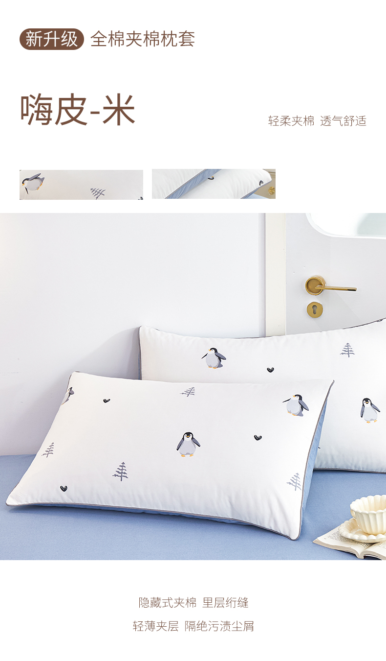 商品名称:元元 2024新款小清新隐藏式夹棉套件单品-夹棉枕套 嗨皮-米