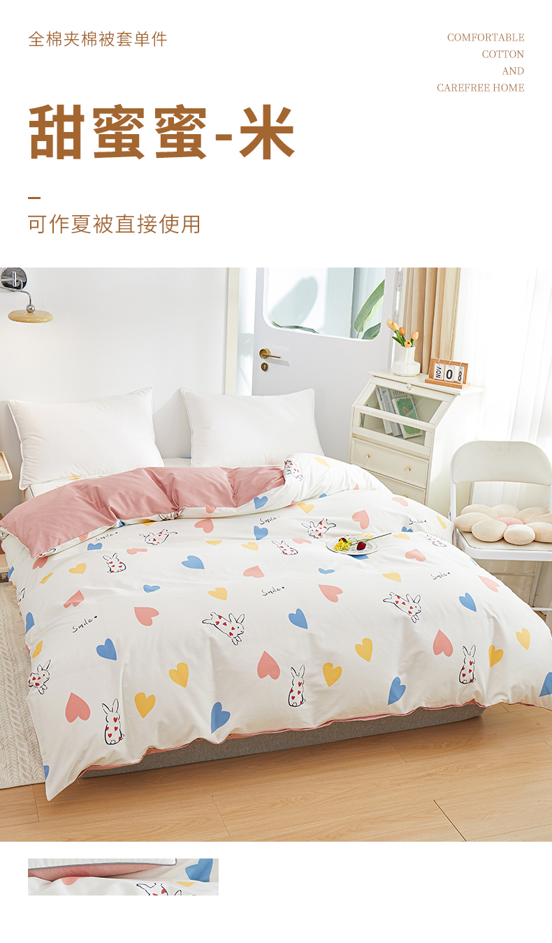 商品名称:元元 2024新款小清新隐藏式夹棉套件单品-夹棉被套 甜蜜蜜-米