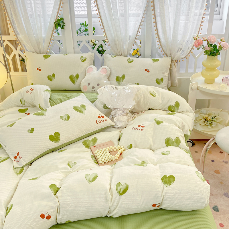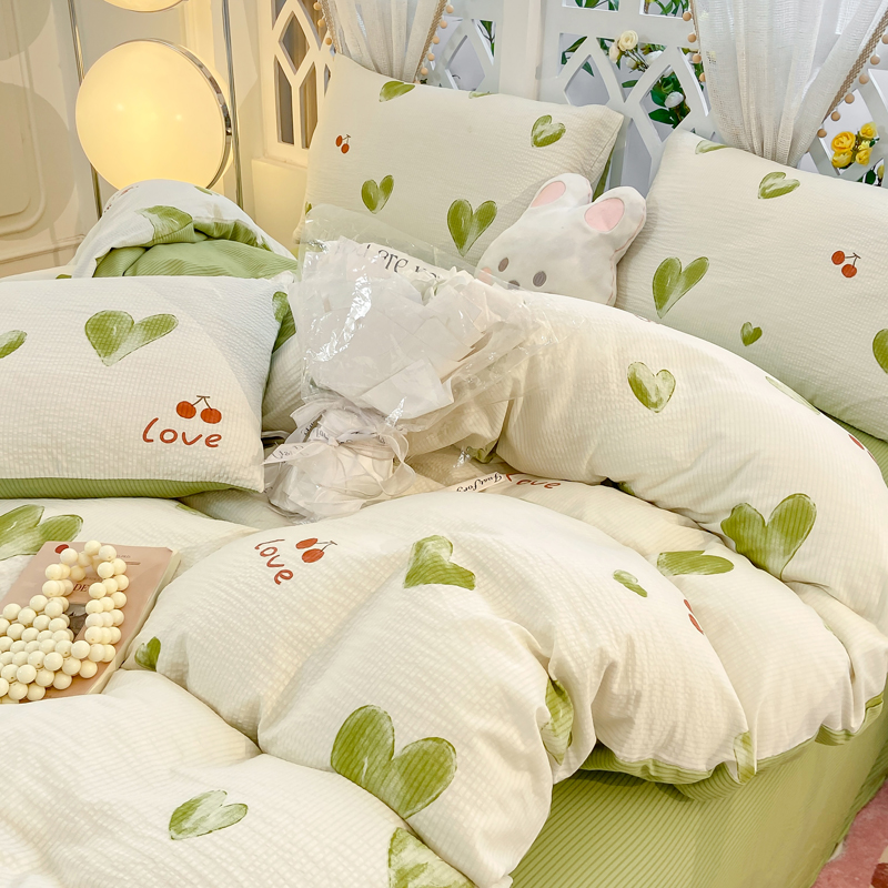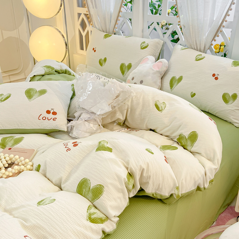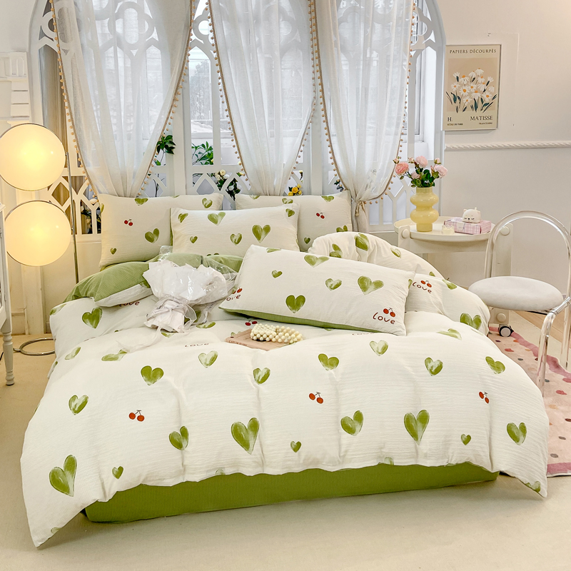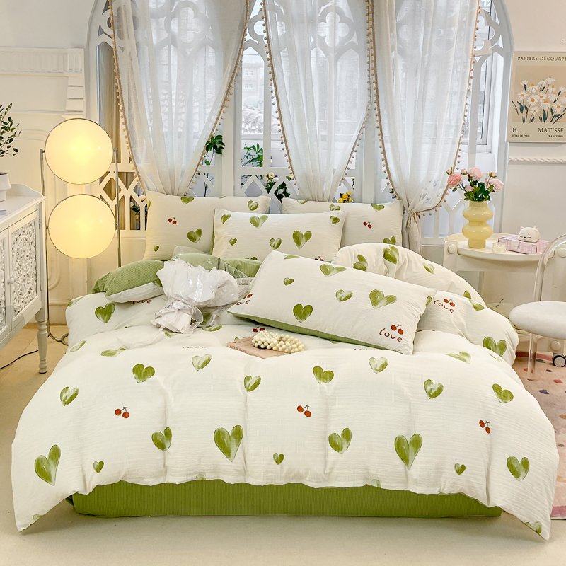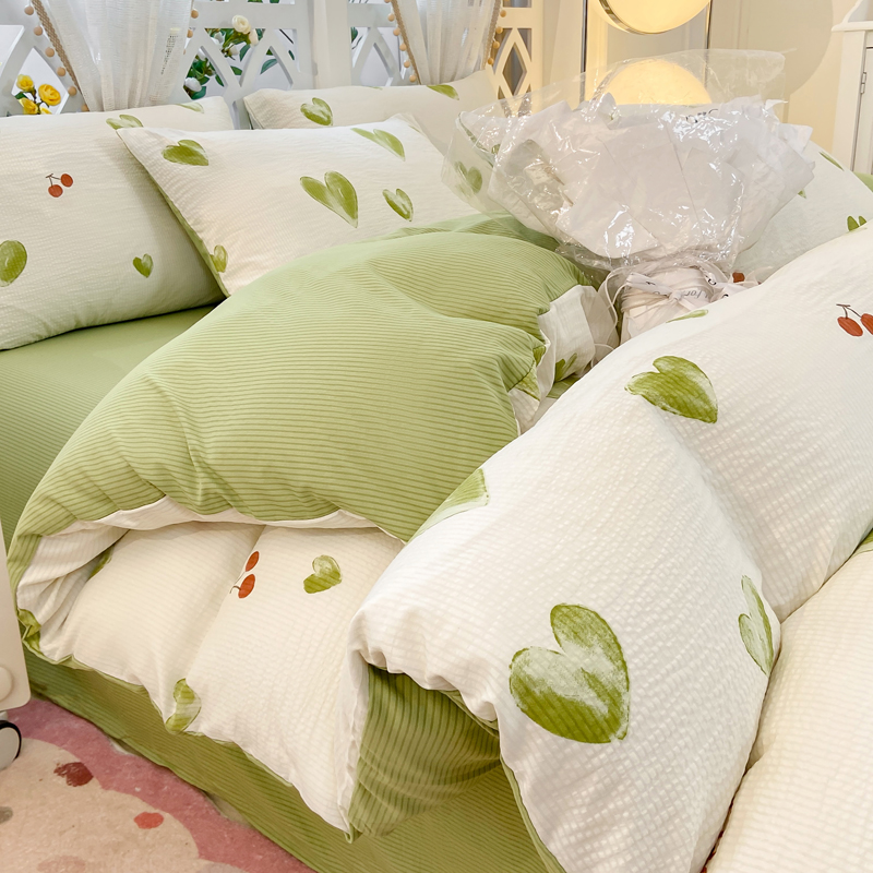 当前位置: 91家纺网 > 商品网购 > 床品套件 > 四件套 > 其它四件套 > 牛牛家纺 牛牛 2024新款泡泡棉小清新四件套(1) 绿色爱心