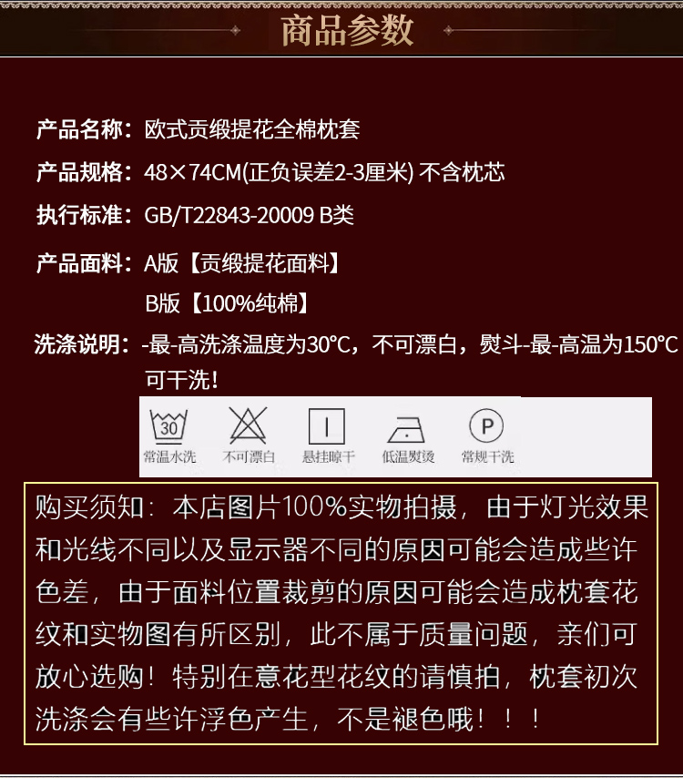 商品名称:(总)丰淘 2024新款贡缎提花枕套