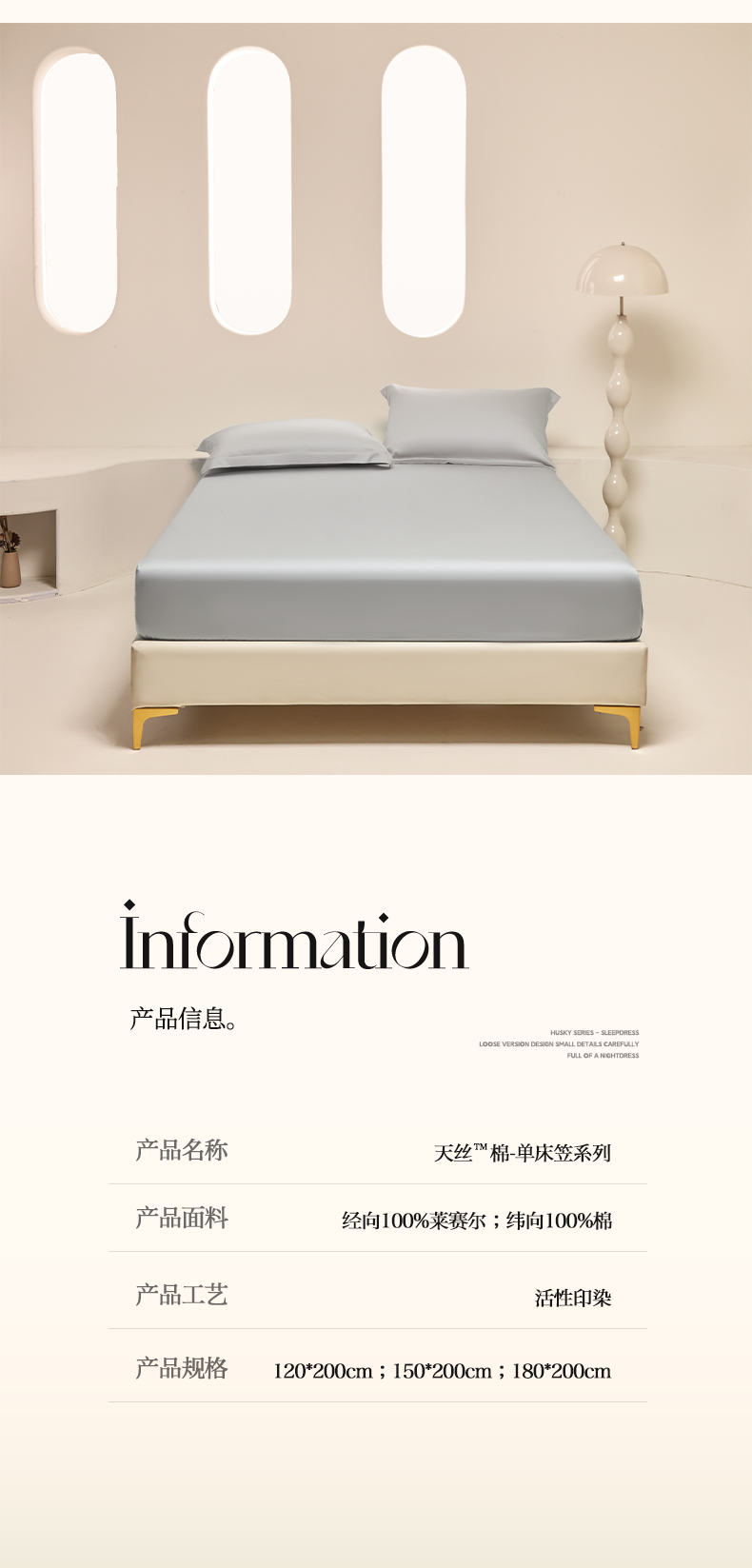 商品名称:涵宸 2024新款兰精天丝棉纯色单品-床笠 床笠-时尚灰