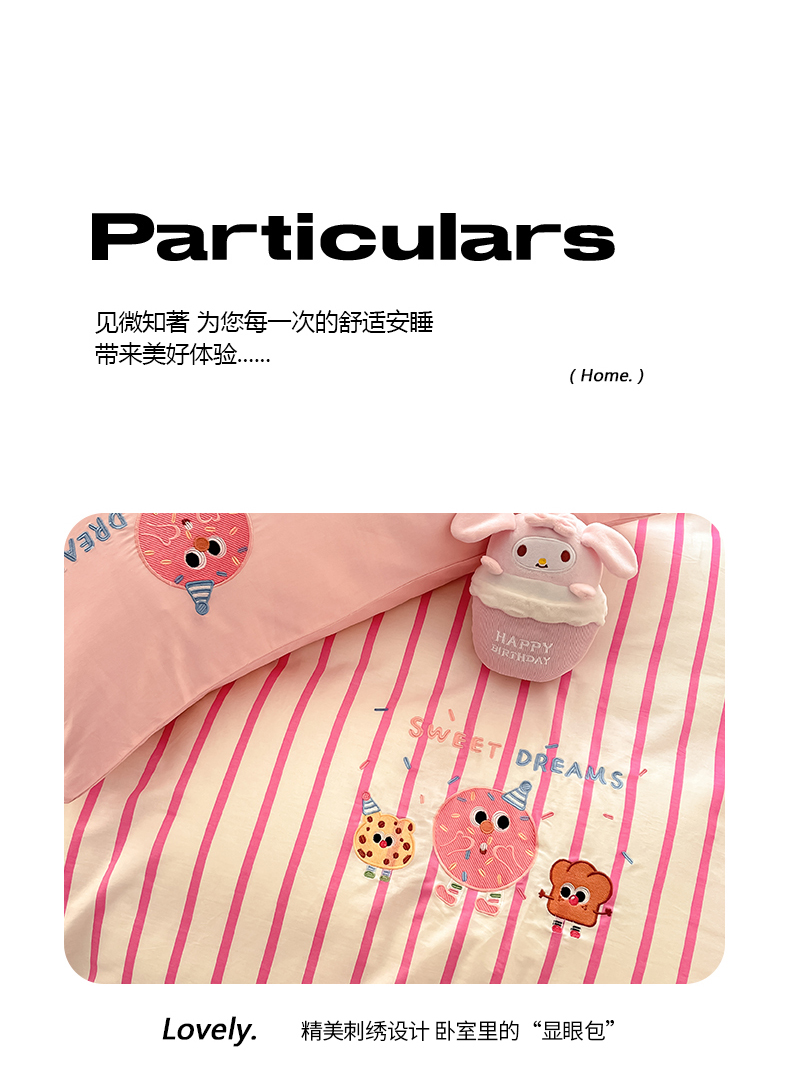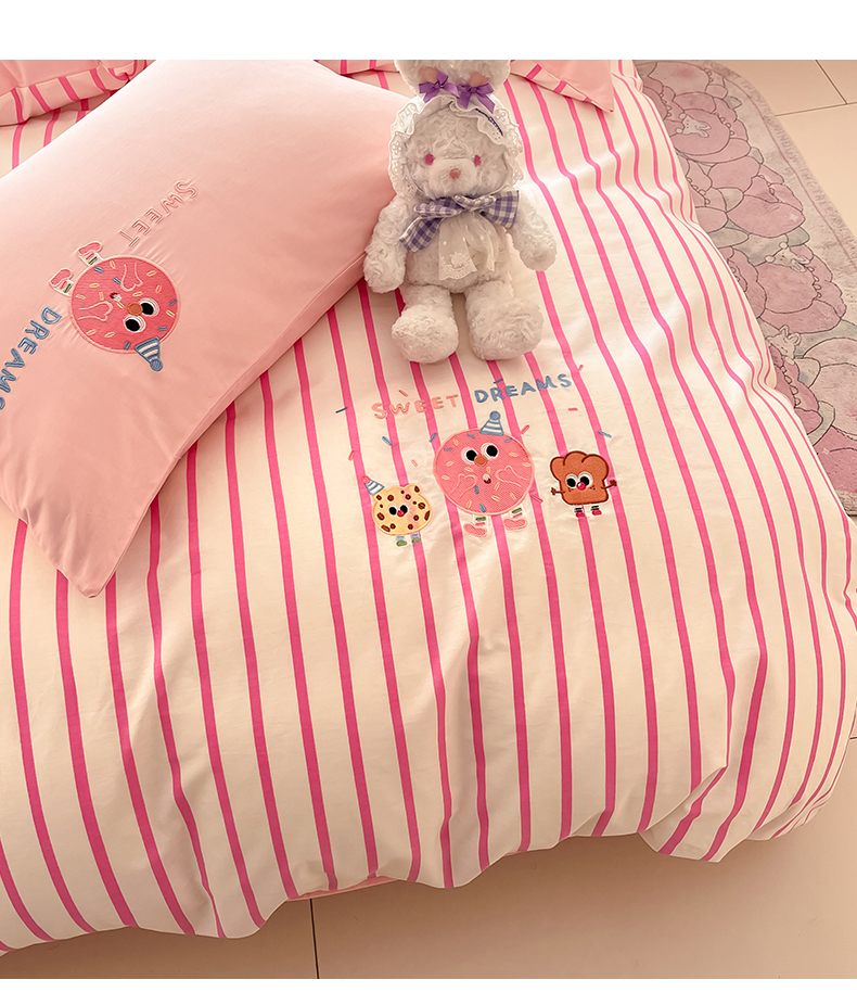 商品名称:2024蜜柚新品直播电商全棉13372ins博主风刺绣四件套 甜甜圈