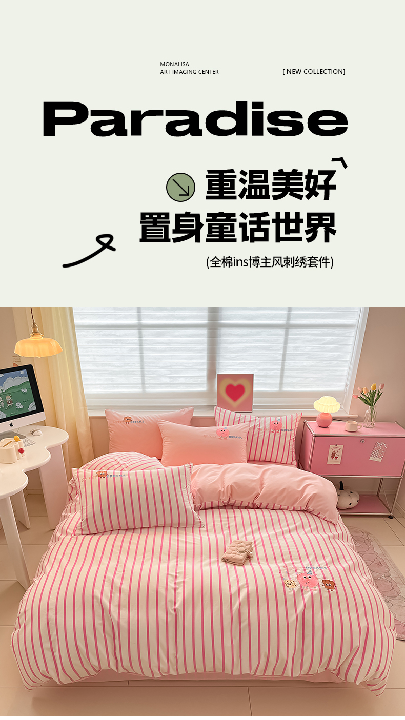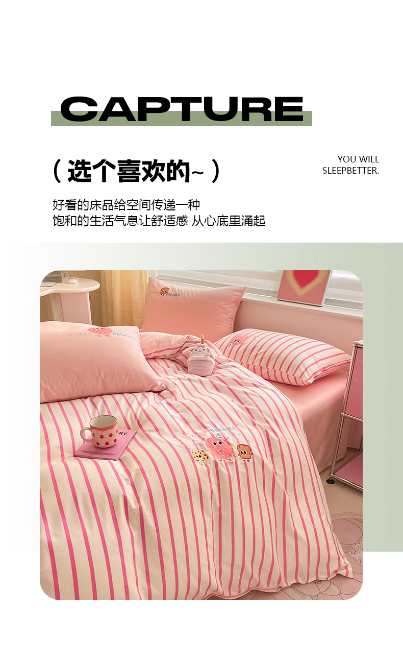 (总)蜜柚 2025秋冬新款色织水洗棉贴布花边款四件套,童趣-浅玉,童趣-卡其,童趣-洋气红