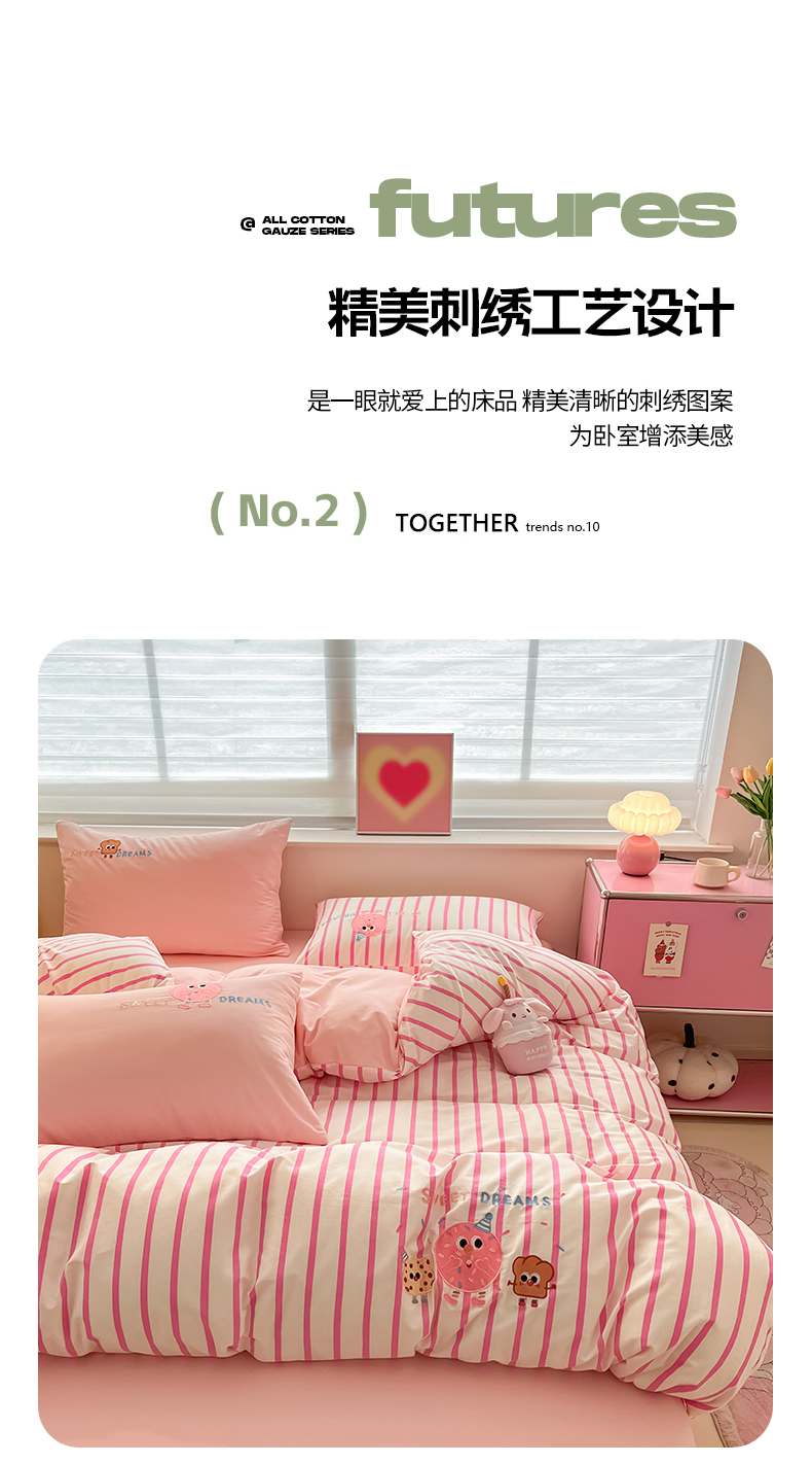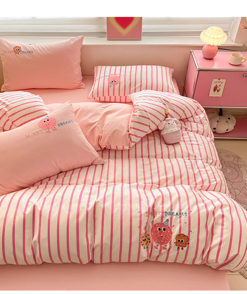 2024蜜柚新品直播电商全棉13372ins博主风刺绣四件套 甜甜圈