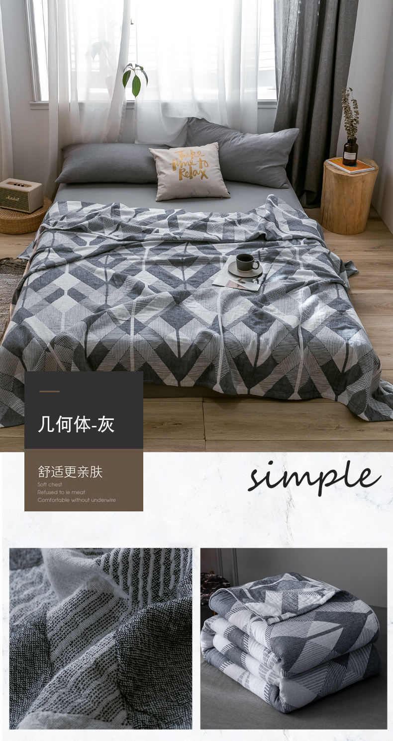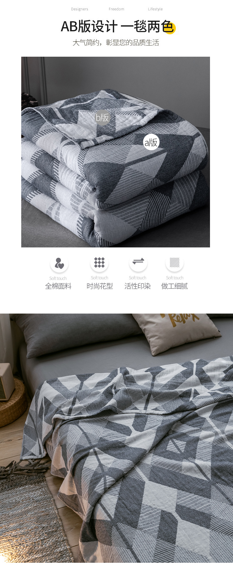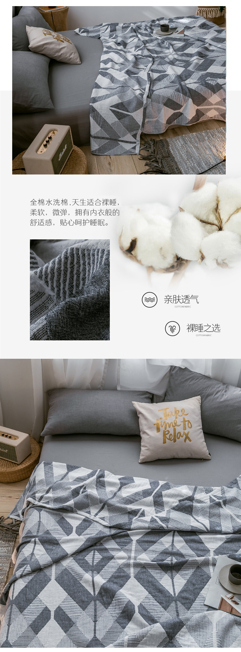 商品名称:朴尔家纺-毛巾被 2024新款三层水洗棉全棉纱布毛巾被 几何体-灰
