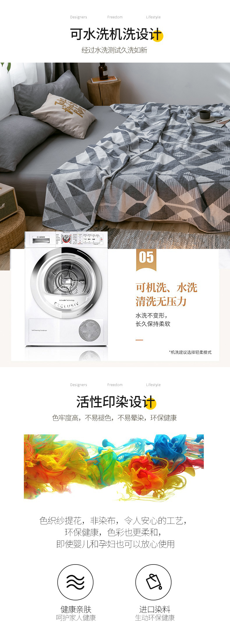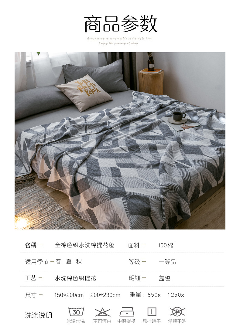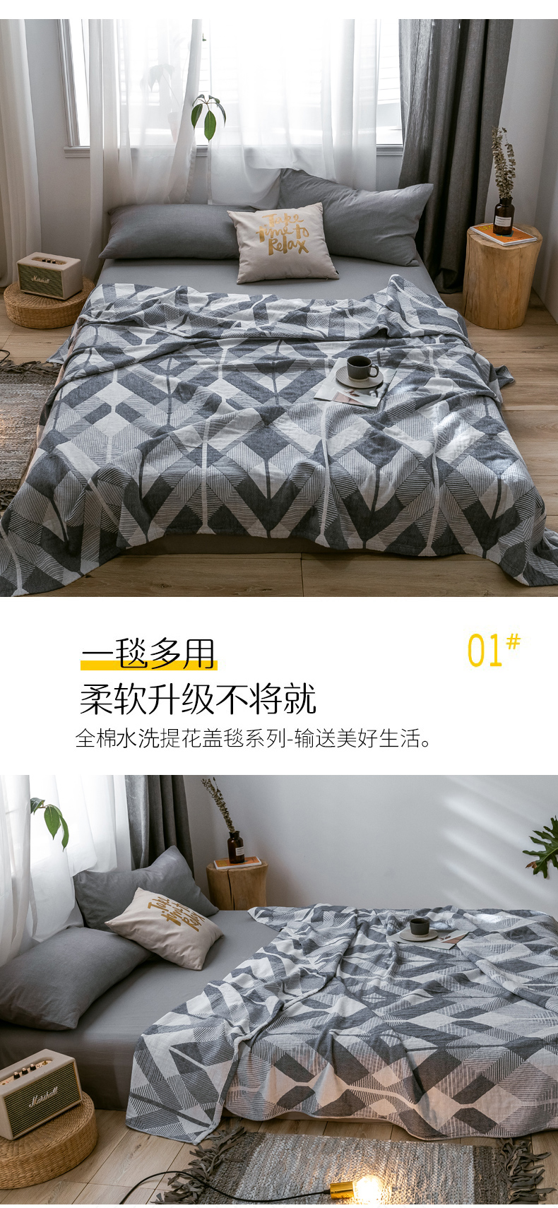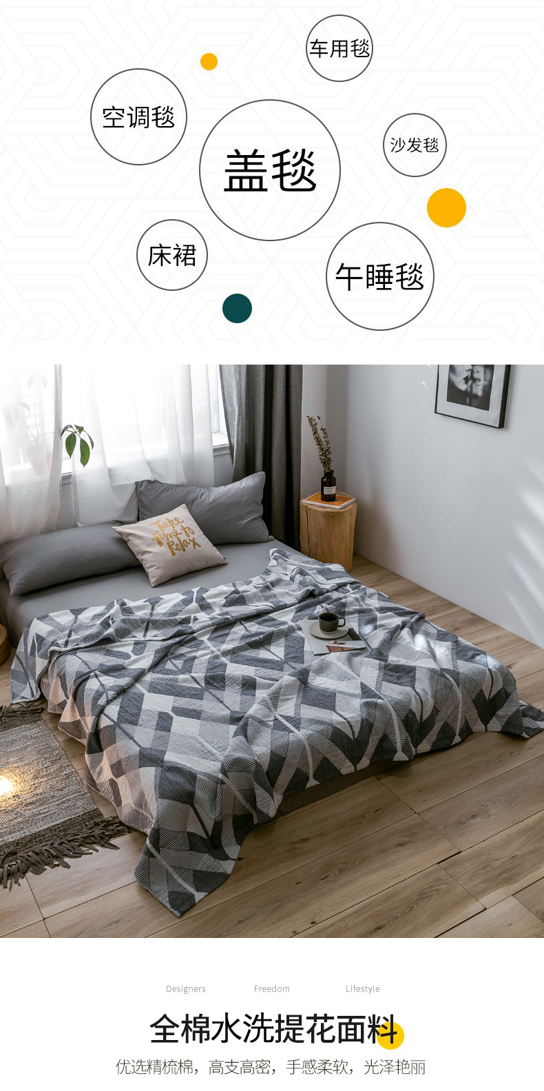 商品名称:朴尔家纺-毛巾被 2024新款三层水洗棉全棉纱布毛巾被 几何体-灰