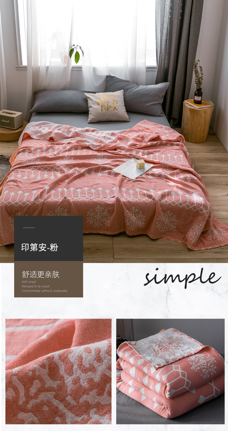 朴尔家纺-毛巾被 2024新款三层水洗棉全棉纱布毛巾被 印第安-粉