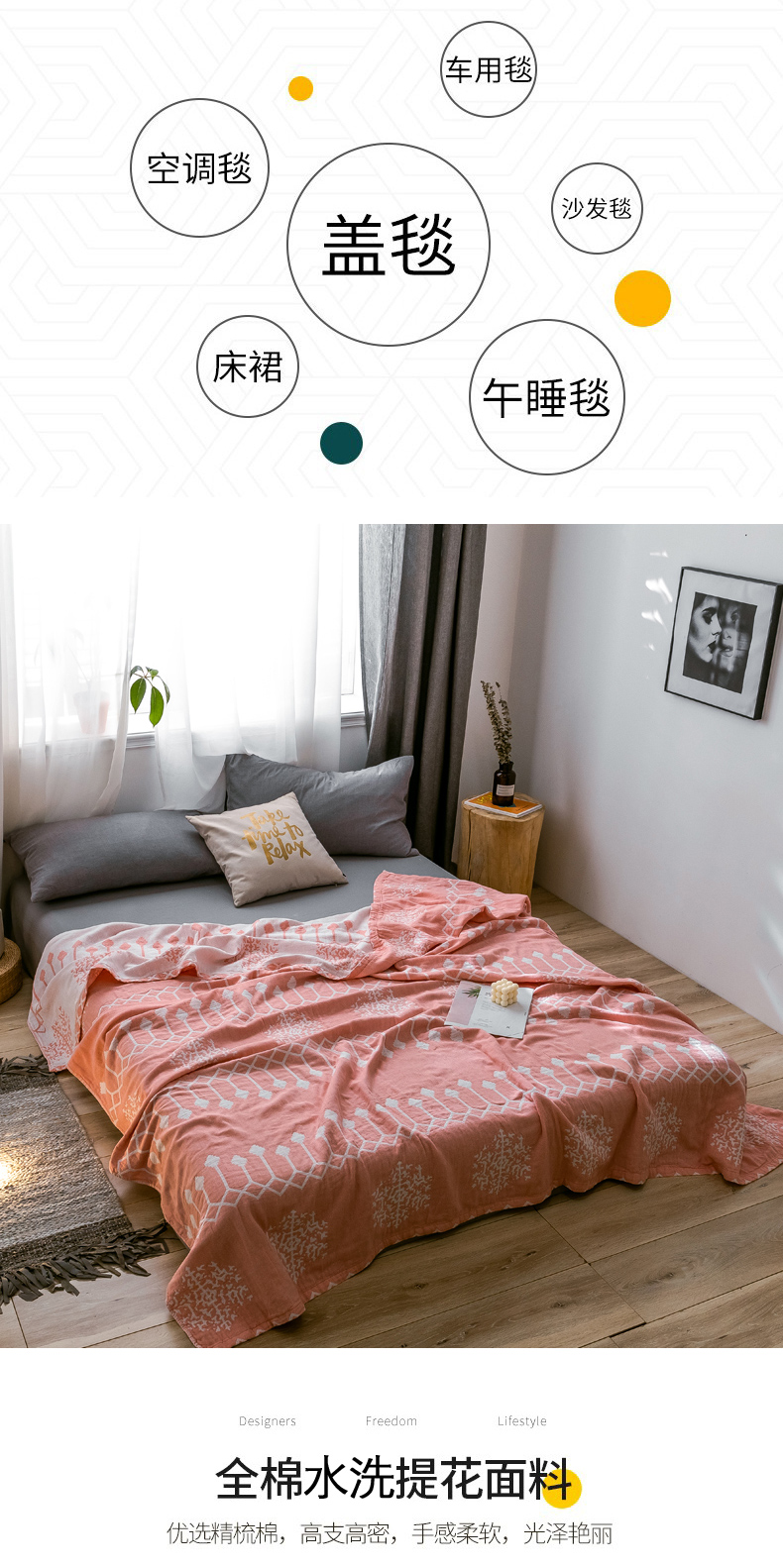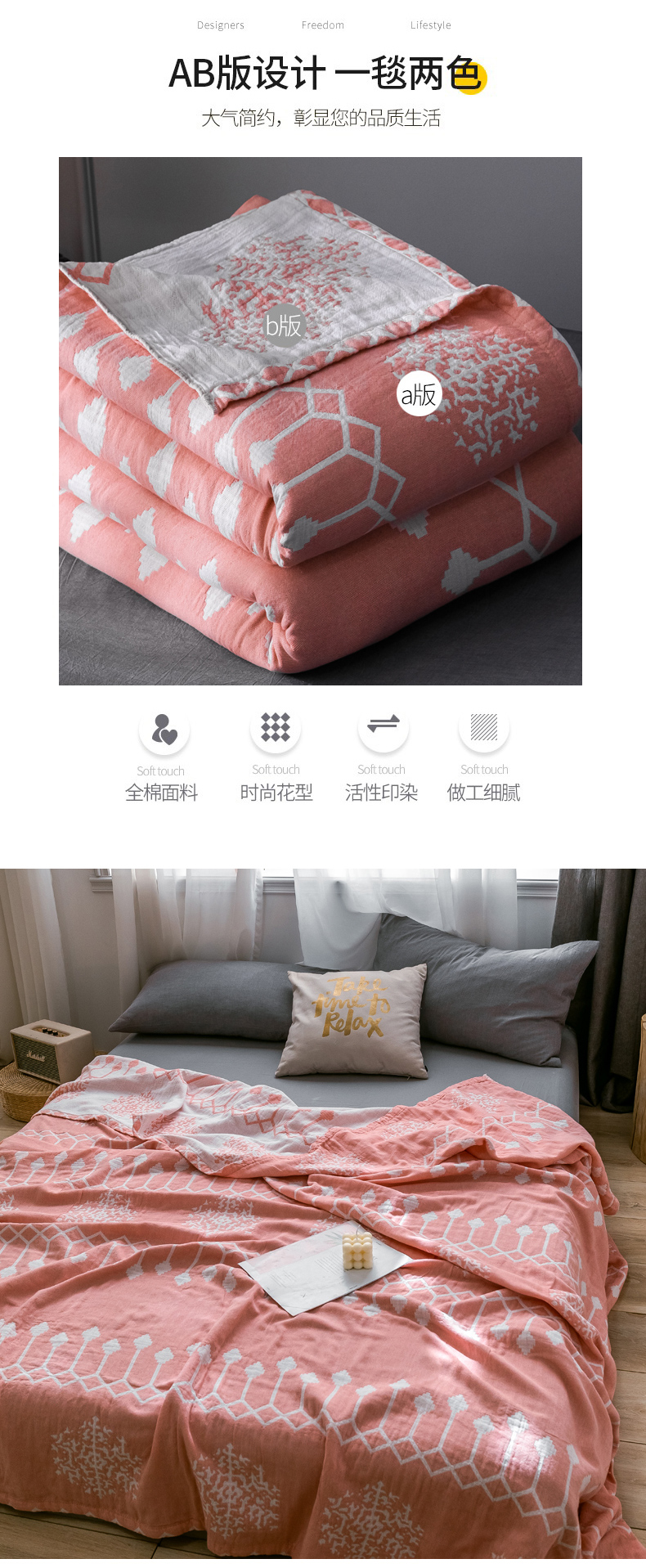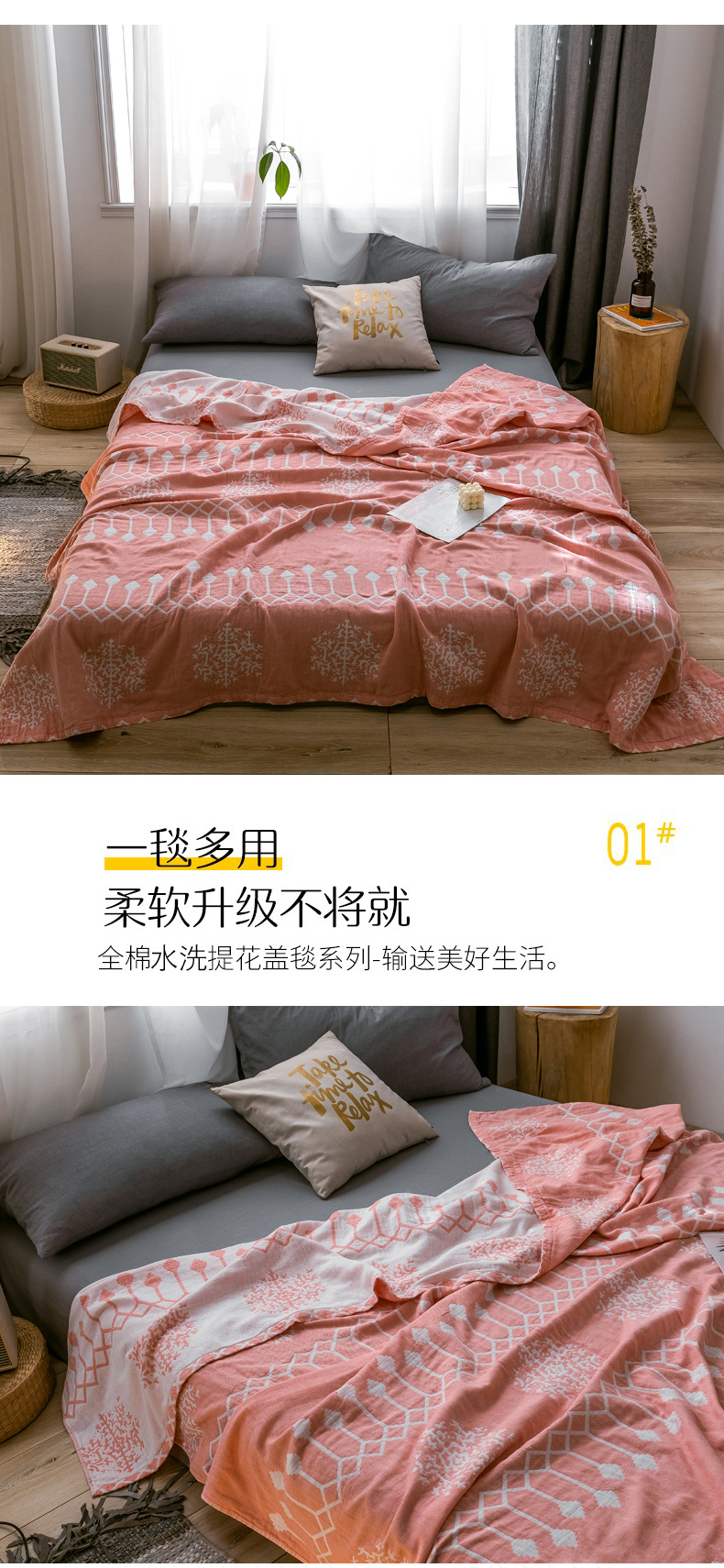 商品名称:朴尔家纺-毛巾被 2024新款三层水洗棉全棉纱布毛巾被 印第安-粉
