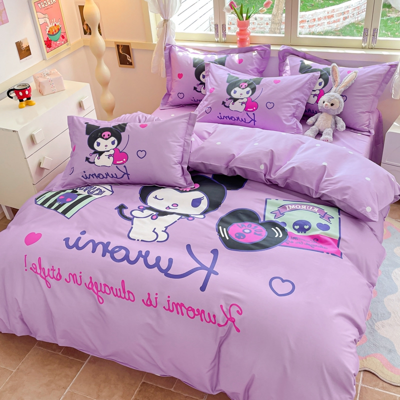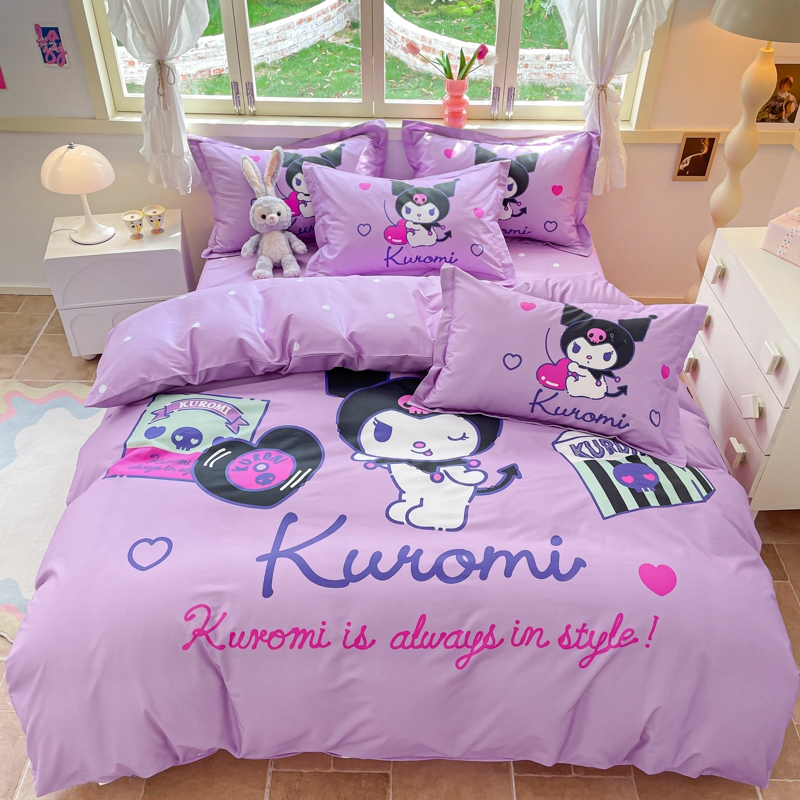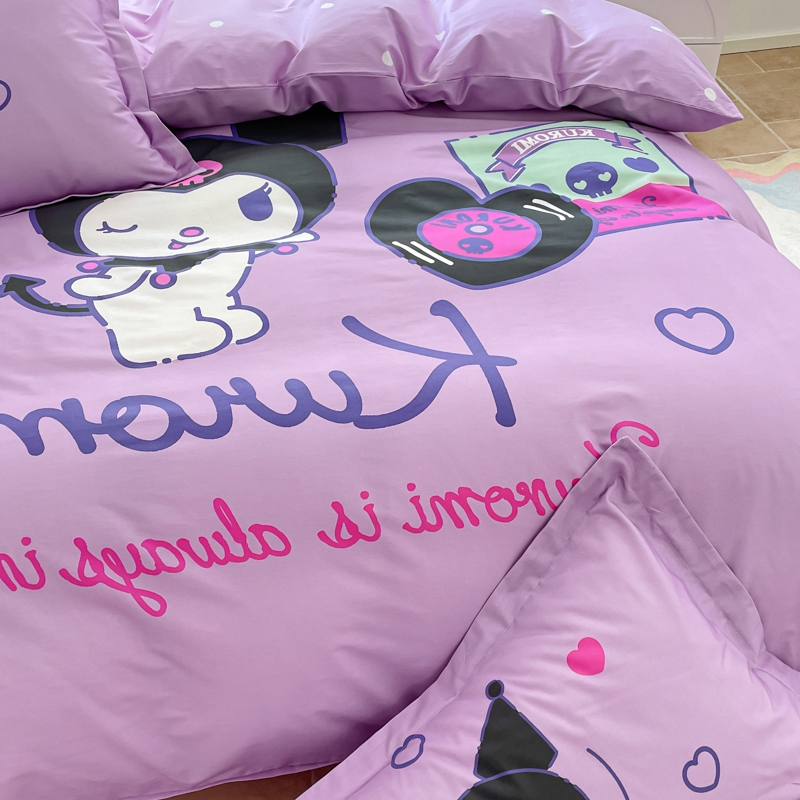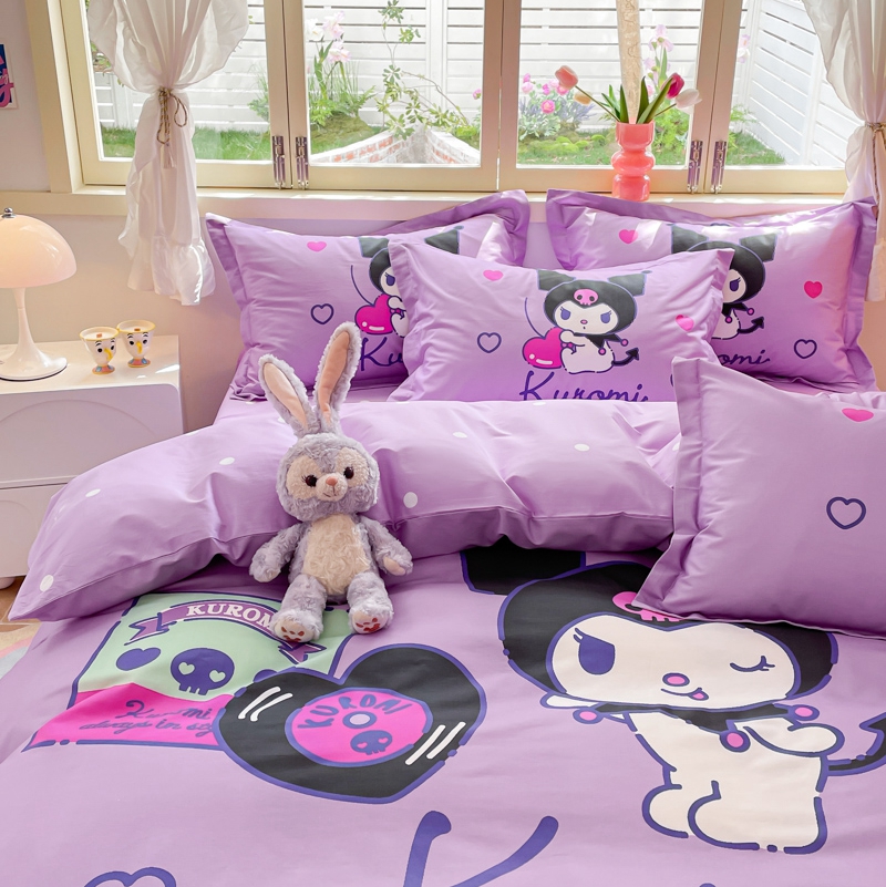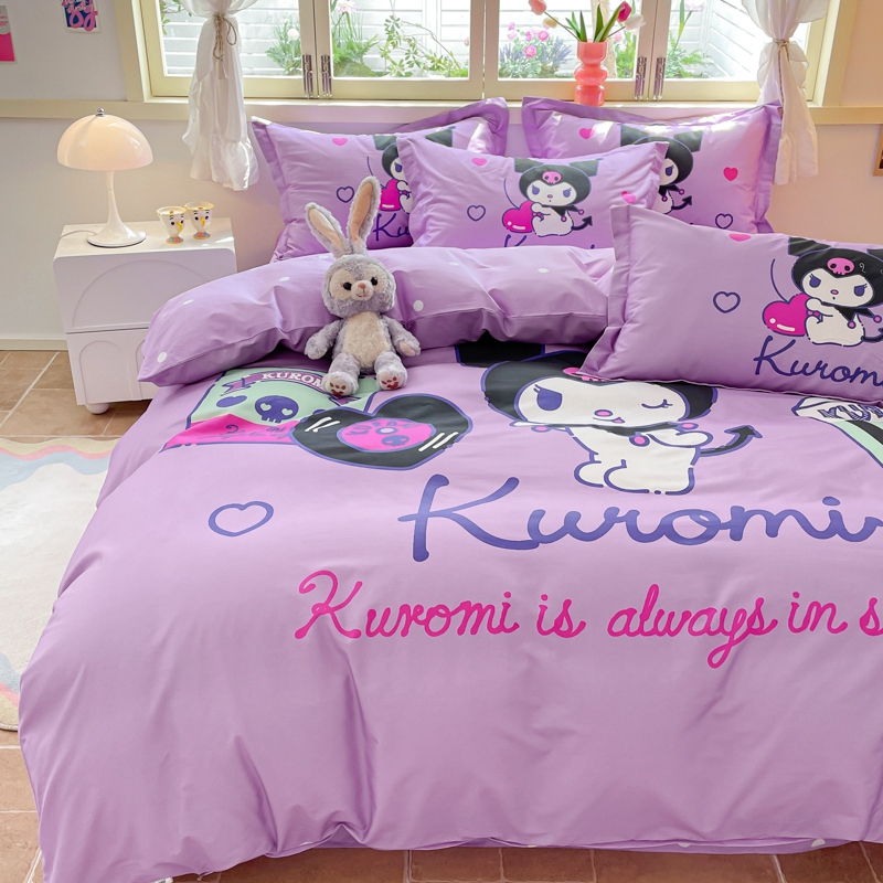 当前位置: 91家纺网 > 商品网购 > 床品套件 > 四件套 > 全棉普通四件套 > 孩子王(原鼎盛) 2025新款三丽鸥系列全棉活性大版印花卡通学生四件套 唱片库洛米