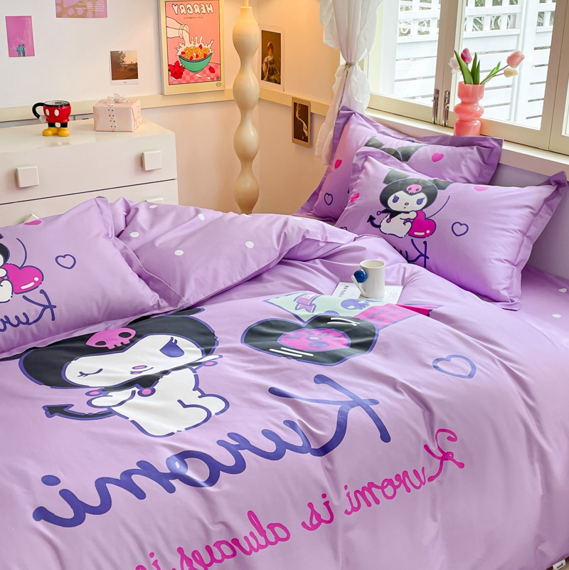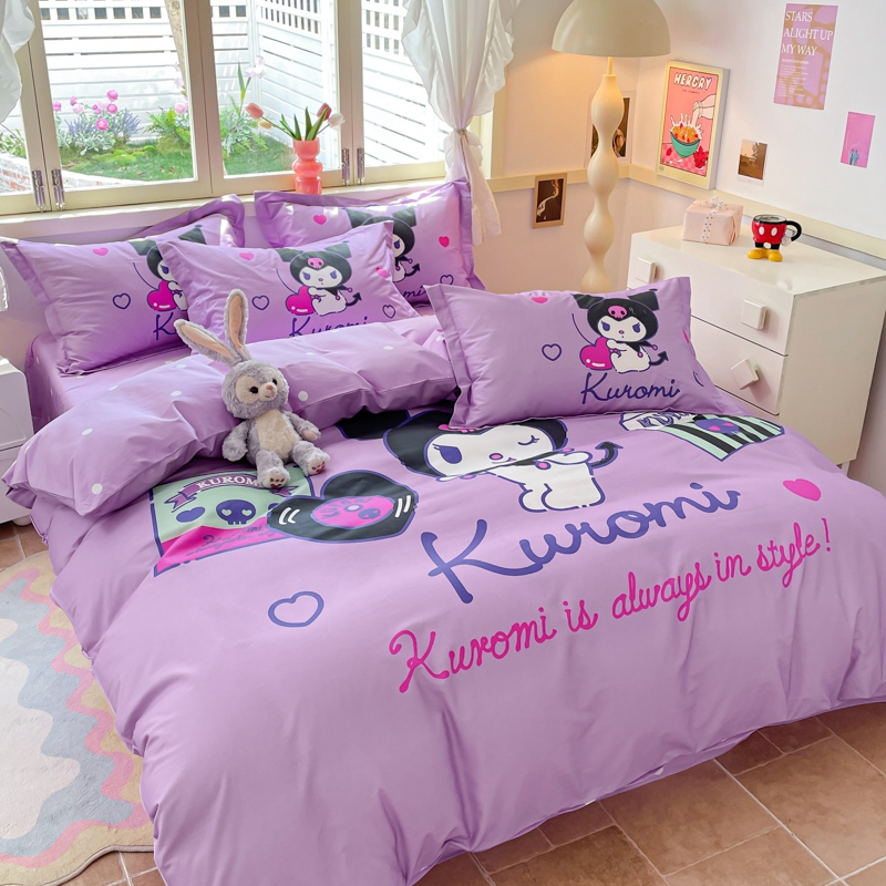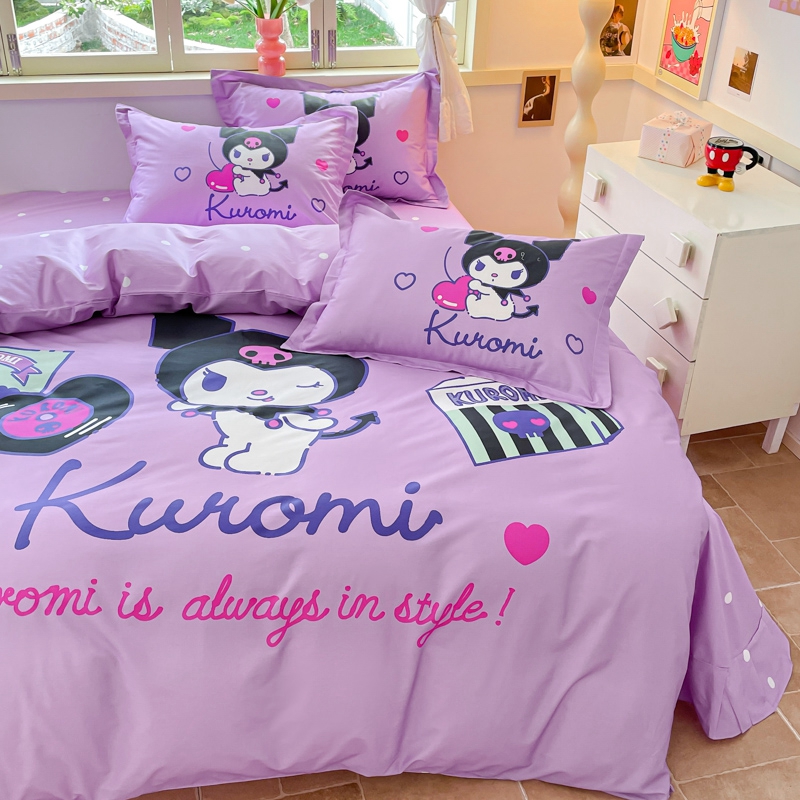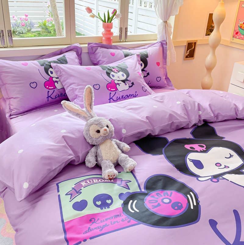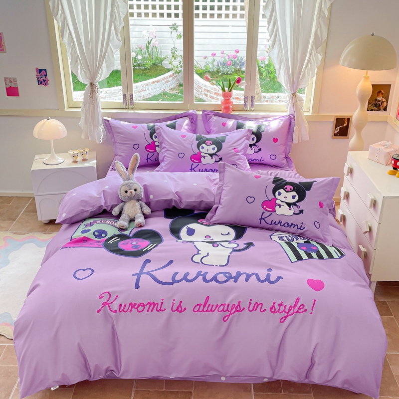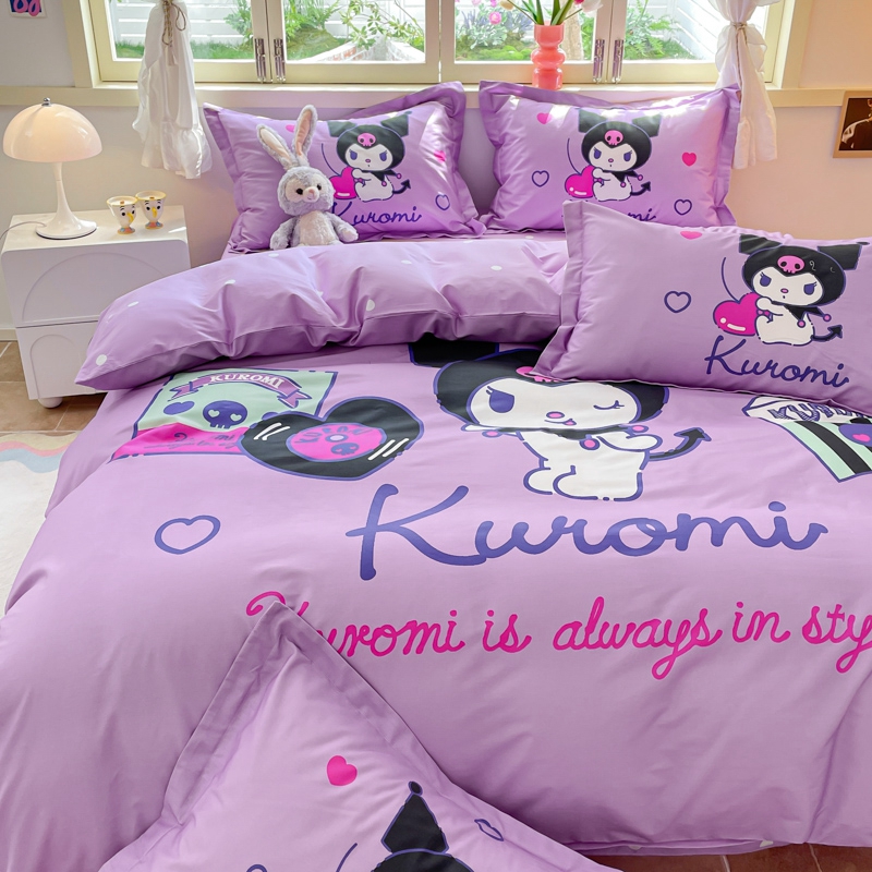 当前位置: 91家纺网 > 商品网购 > 床品套件 > 四件套 > 全棉普通四件套 > 孩子王(原鼎盛) 2025新款三丽鸥系列全棉活性大版印花卡通学生四件套 唱片库洛米