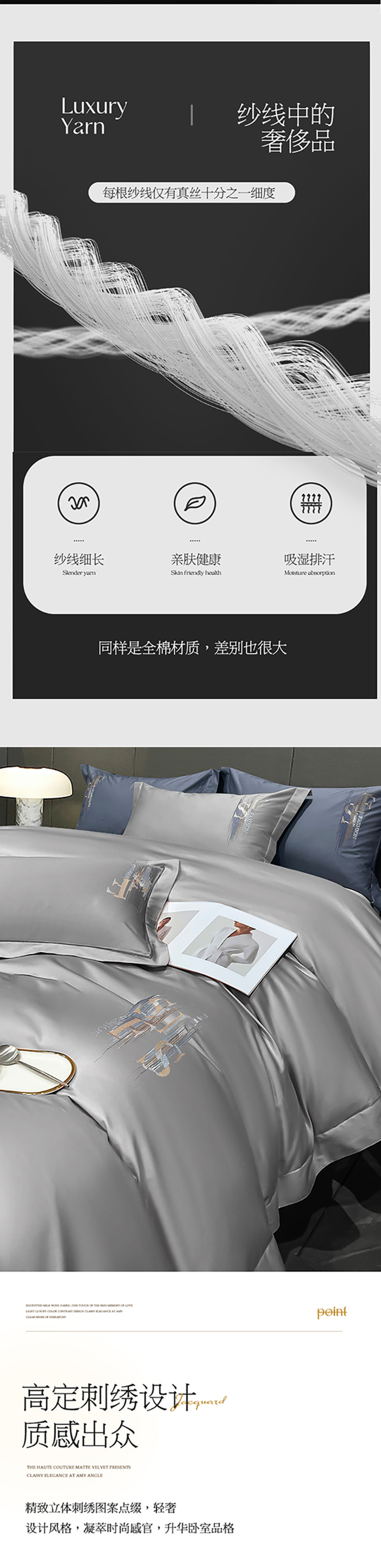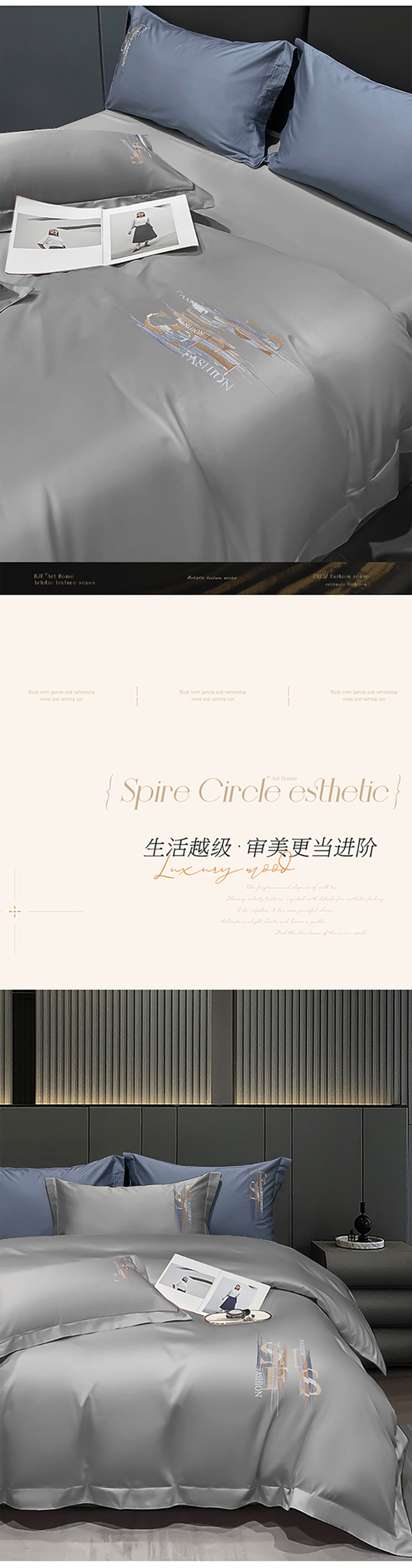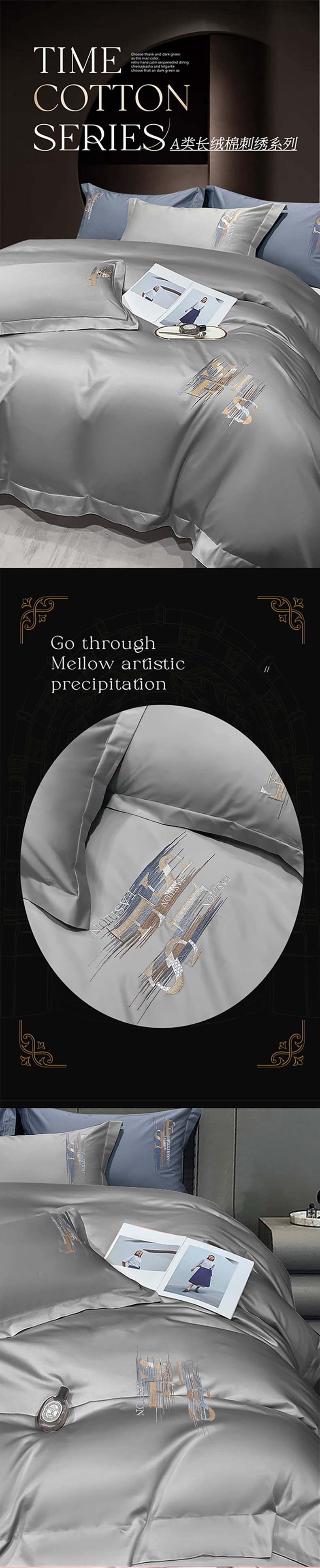 商品名称:莱阁亿 2025新款高支高密长绒棉刺绣四件套--时光痕迹 时光痕迹-月光灰