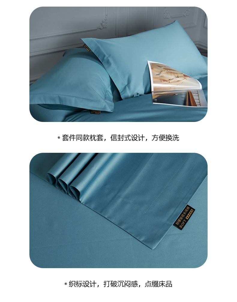 当前位置: 91家纺网 > 商品网购 > 床品套件 > 四件套 > 长绒棉四件套 > 莱阁亿 2025新款高支高密新疆长绒棉纯色双拼四件套 茗翠蓝