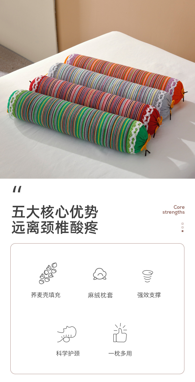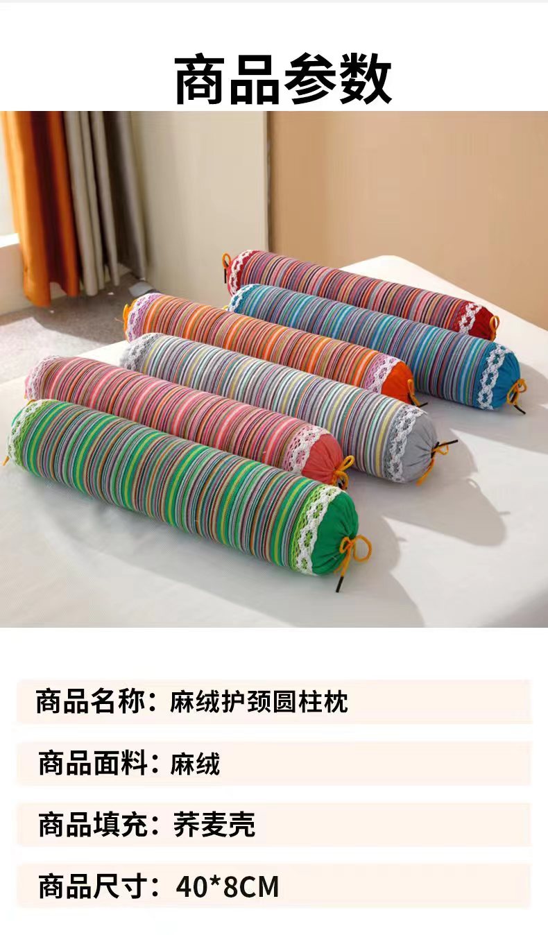 商品名称:(总)大熊枕芯 2024新款麻绒护颈圆柱枕头枕芯荞麦枕