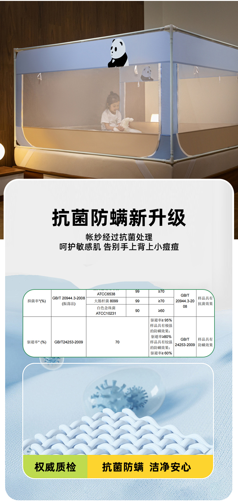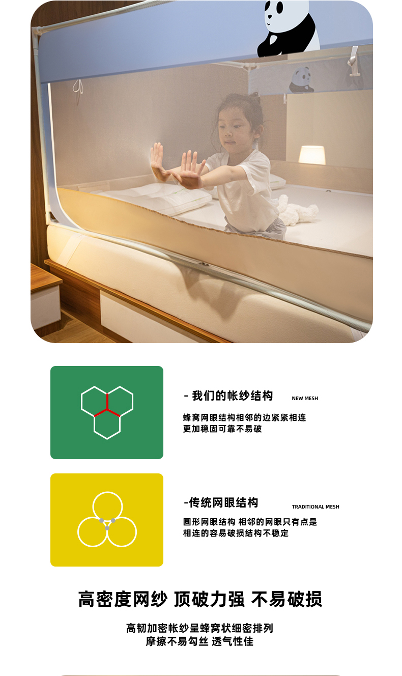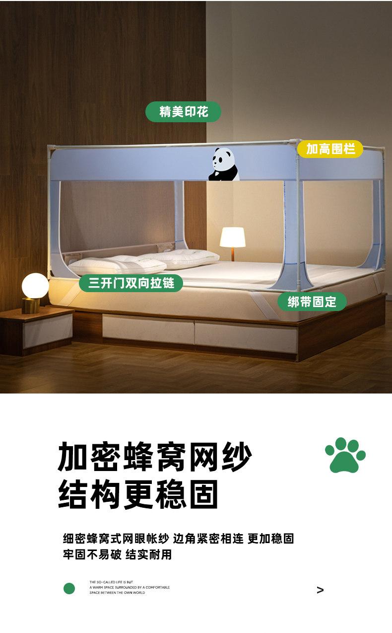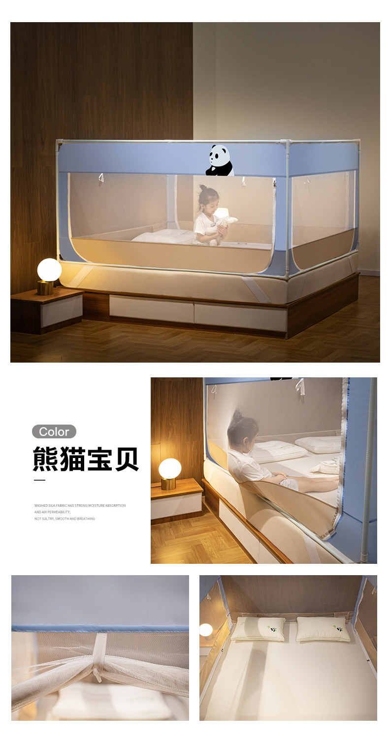 飞轮海蚊帐 2024新款全底单围栏加高加密帐纱-WZ-03 熊猫宝贝
