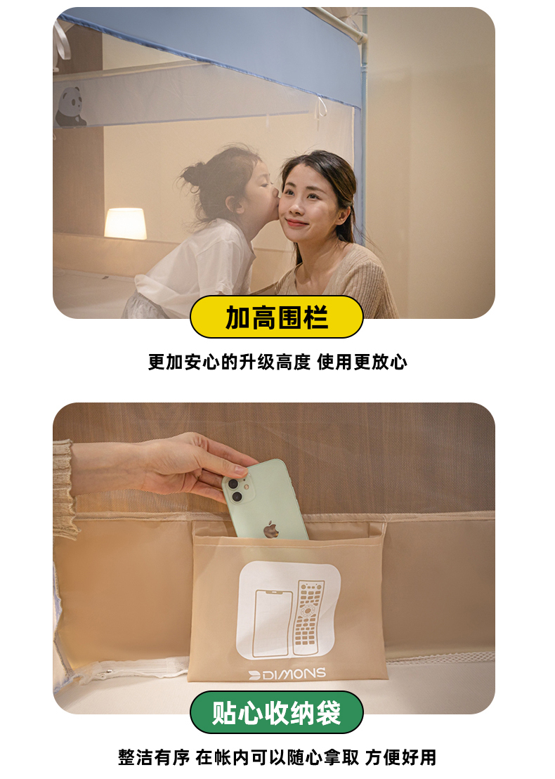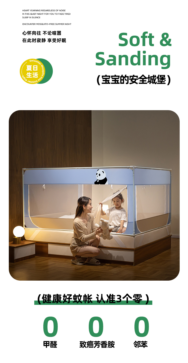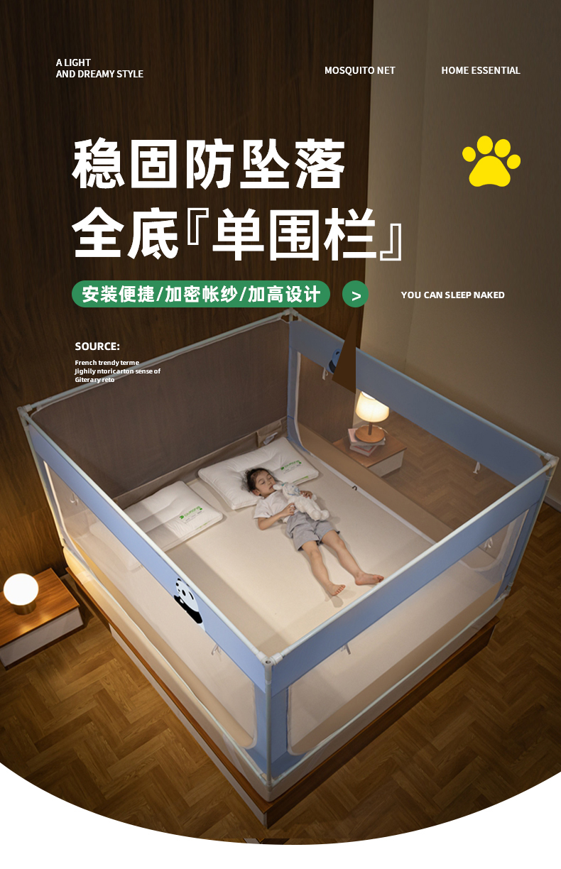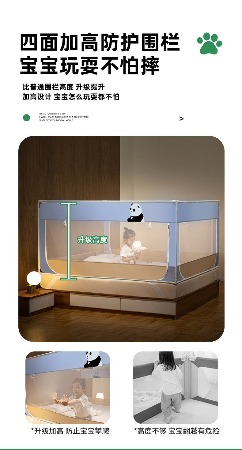 飞轮海蚊帐 2024新款全底单围栏加高加密帐纱-WZ-03 熊猫宝贝