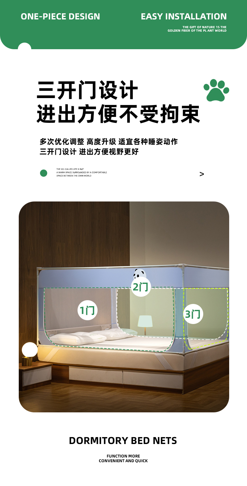 (总)飞轮海蚊帐 2025新款三开门方顶花边防摔遮光蚊帐-Z39,你好蛙,不许动,快乐家族,生活有趣,熊猫宝