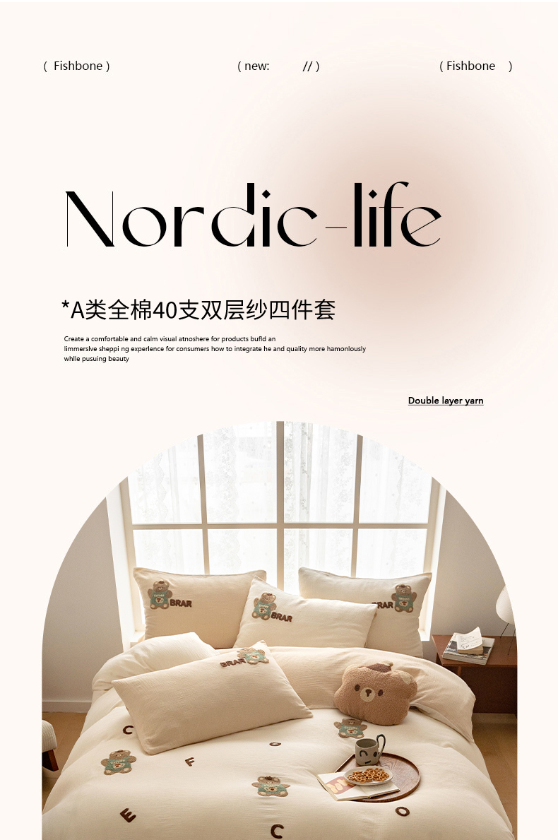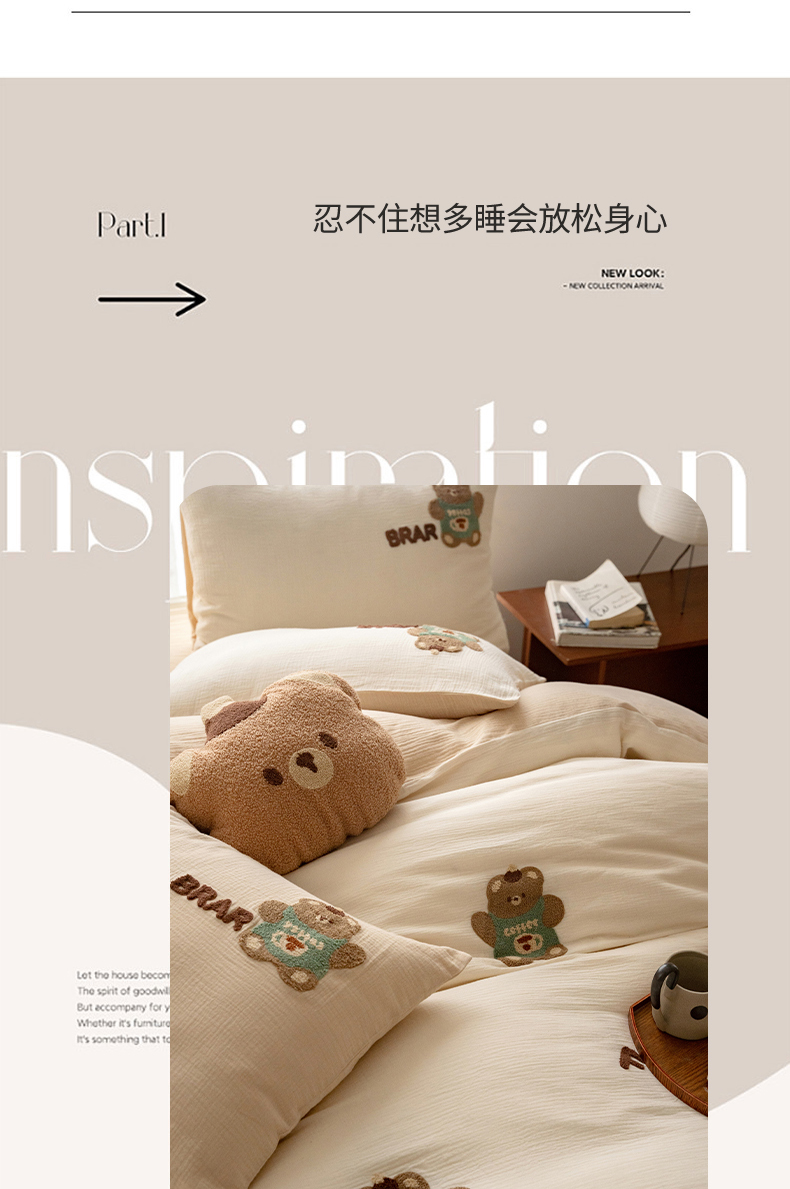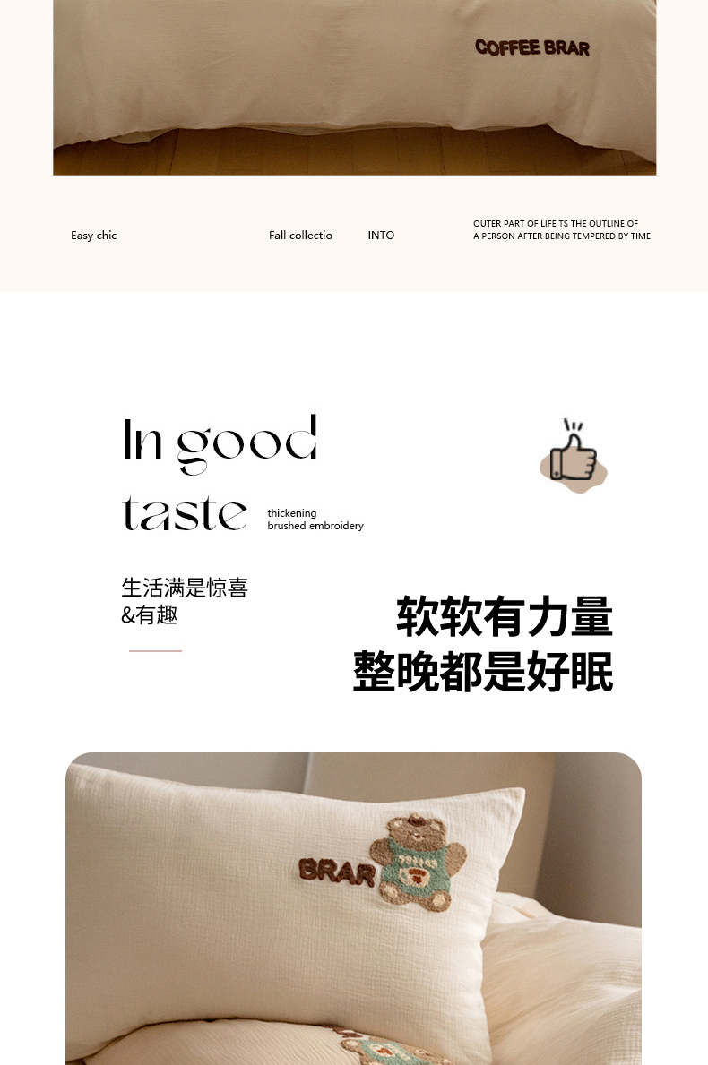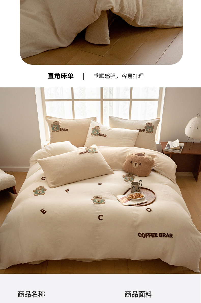 当前位置: 91家纺网 > 商品网购 > 床品套件 > 四件套 > 全棉普通四件套 > FORTWO家纺原创设计(FOR TWO家纺) 2024新款双层纱系列四件套 咖啡熊