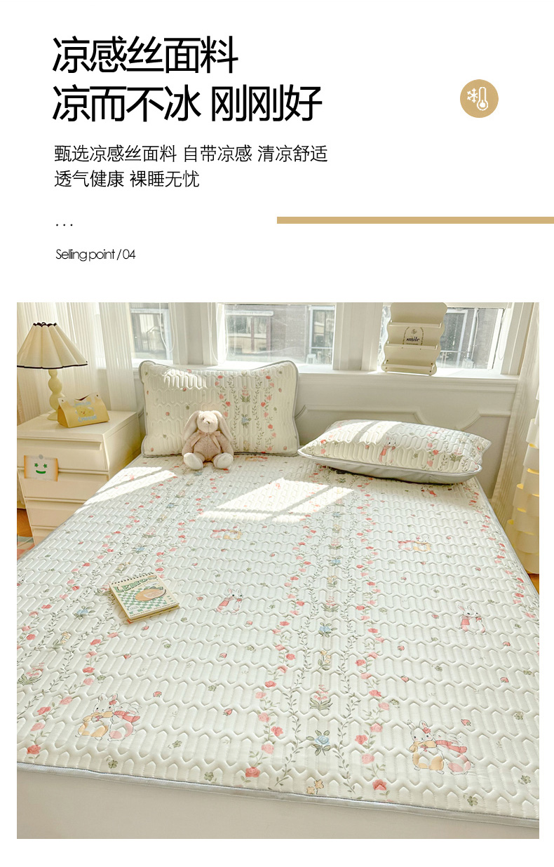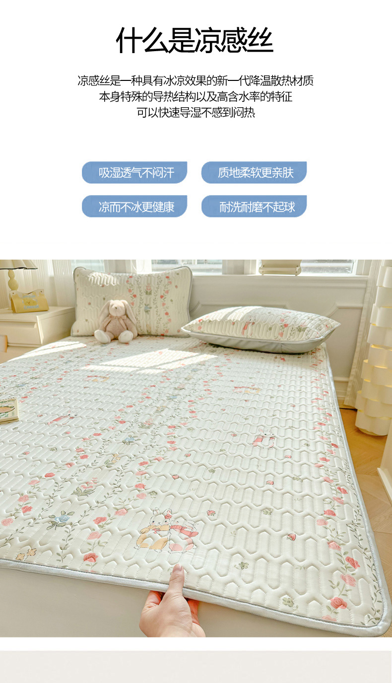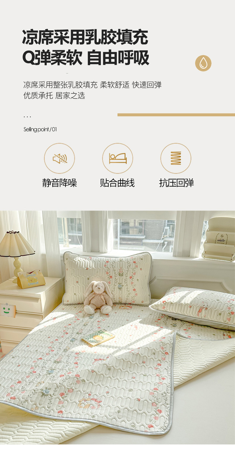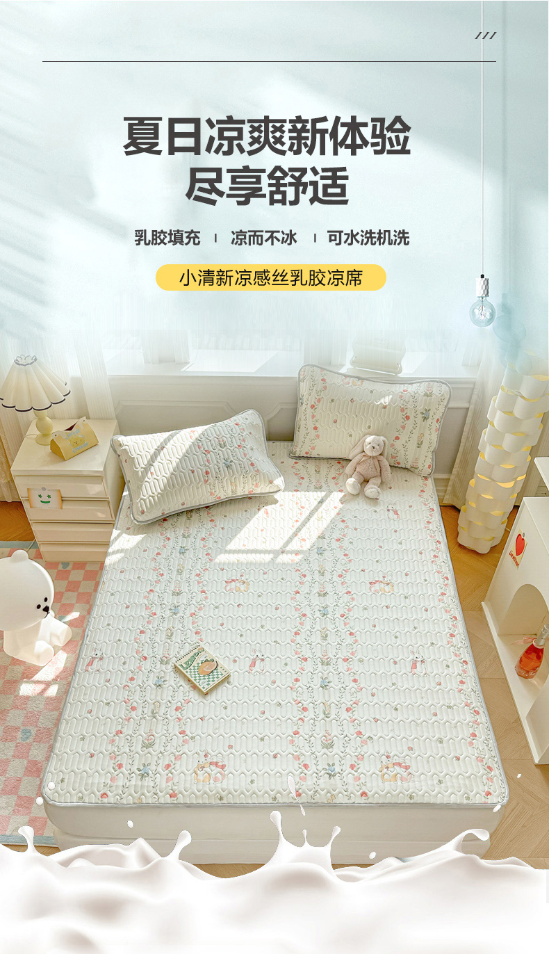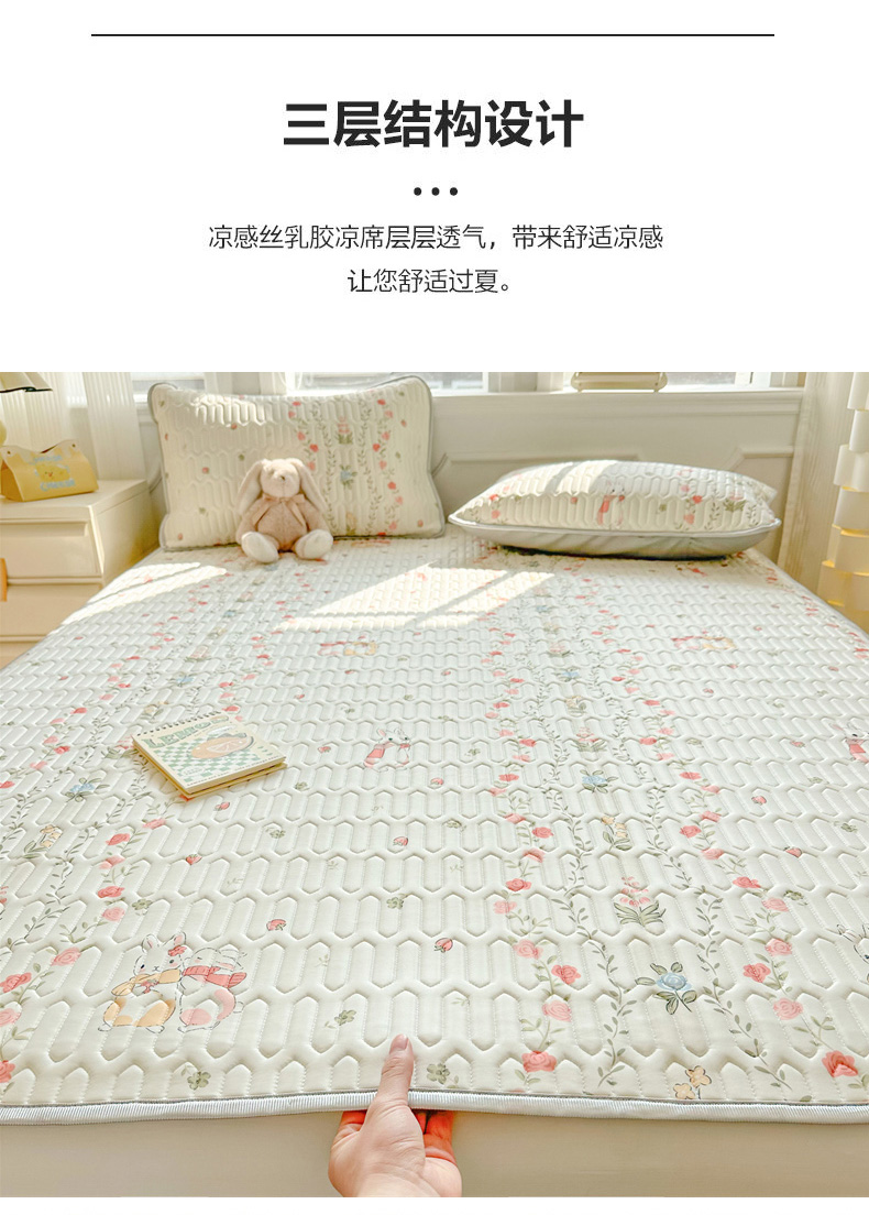 商品名称:慕尚家纺 2025新款凉感丝印花乳胶凉席 草莓小兔