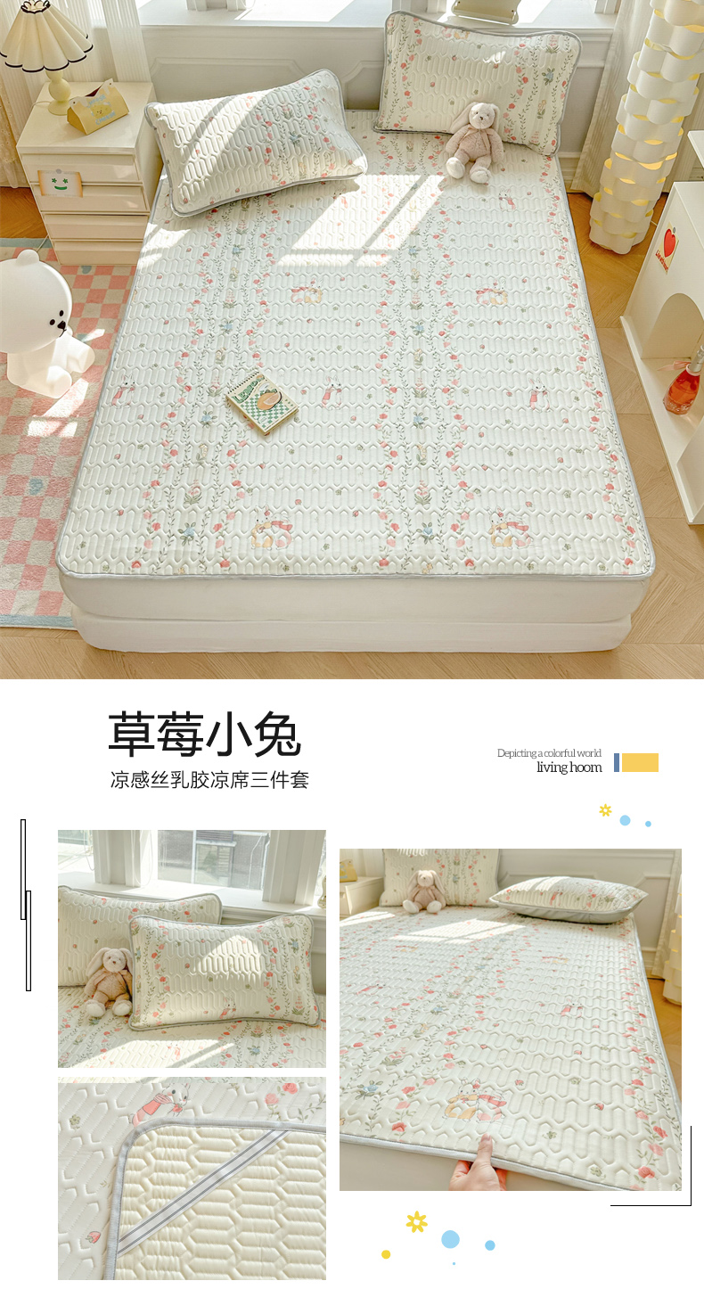 慕尚家纺 2025新款凉感丝印花乳胶凉席 草莓小兔