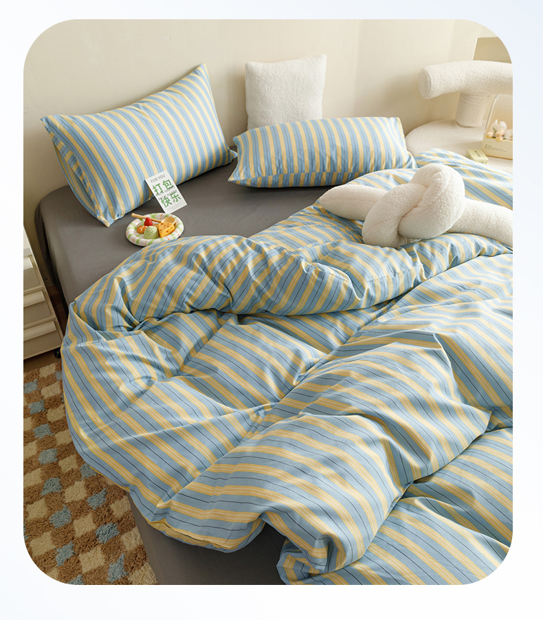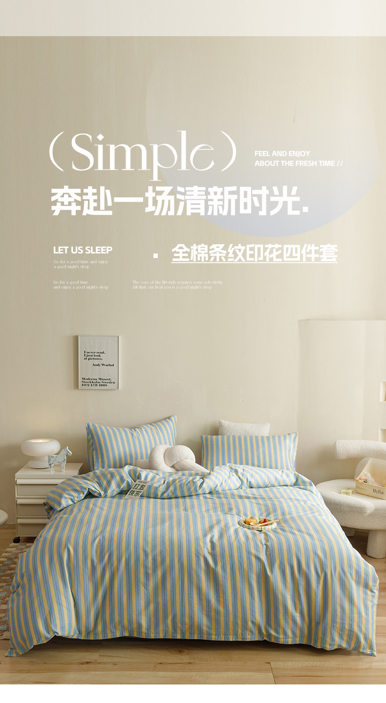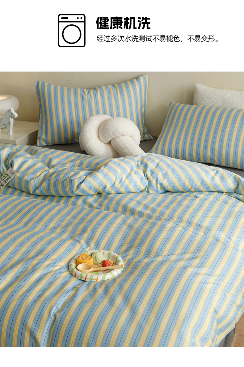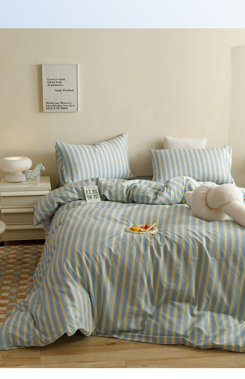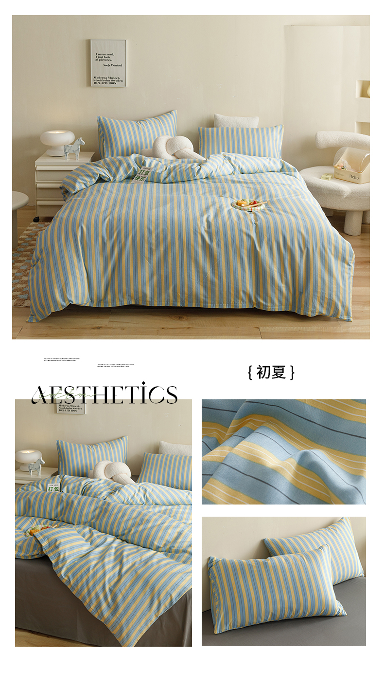 网客家纺 2024新款全棉条纹印花四件套 初夏