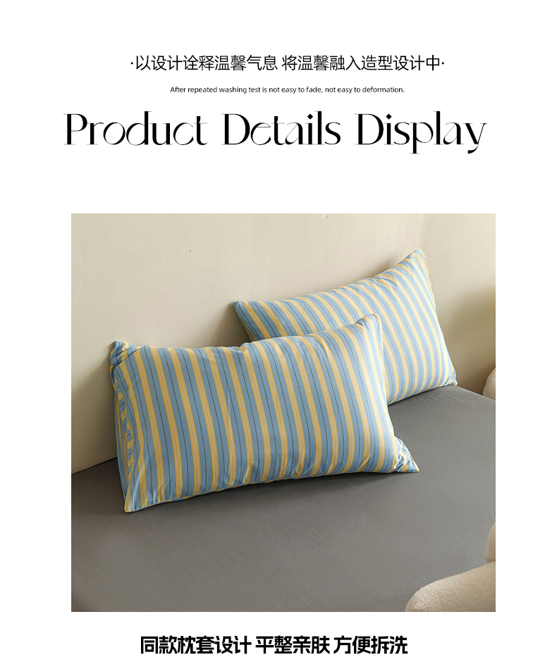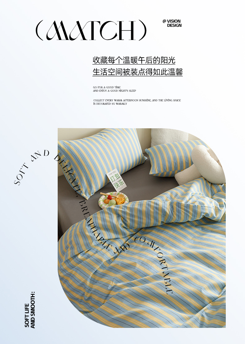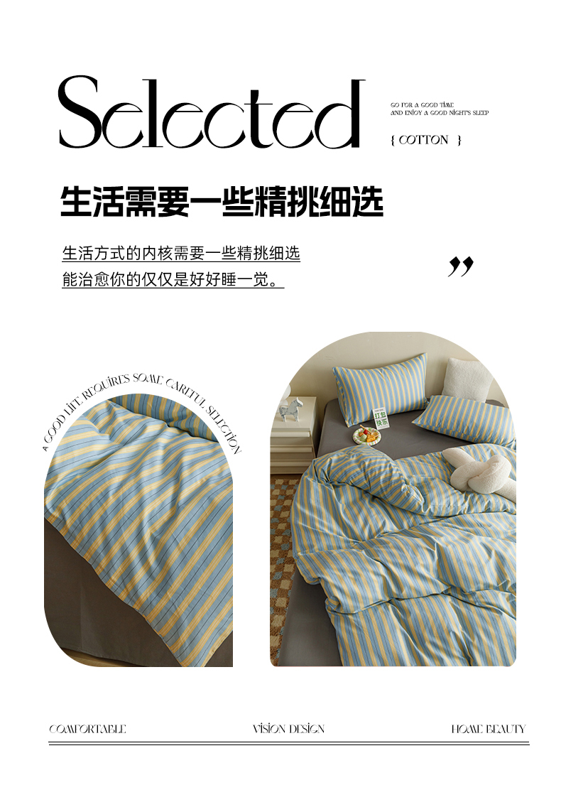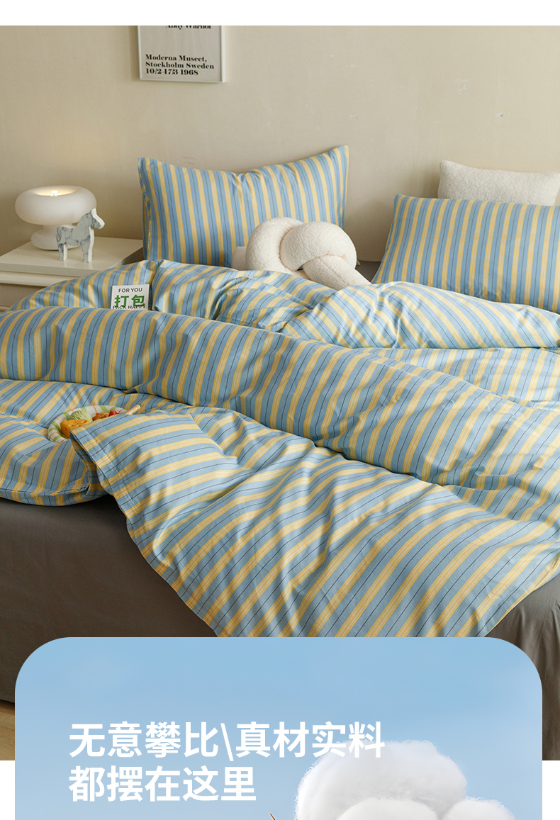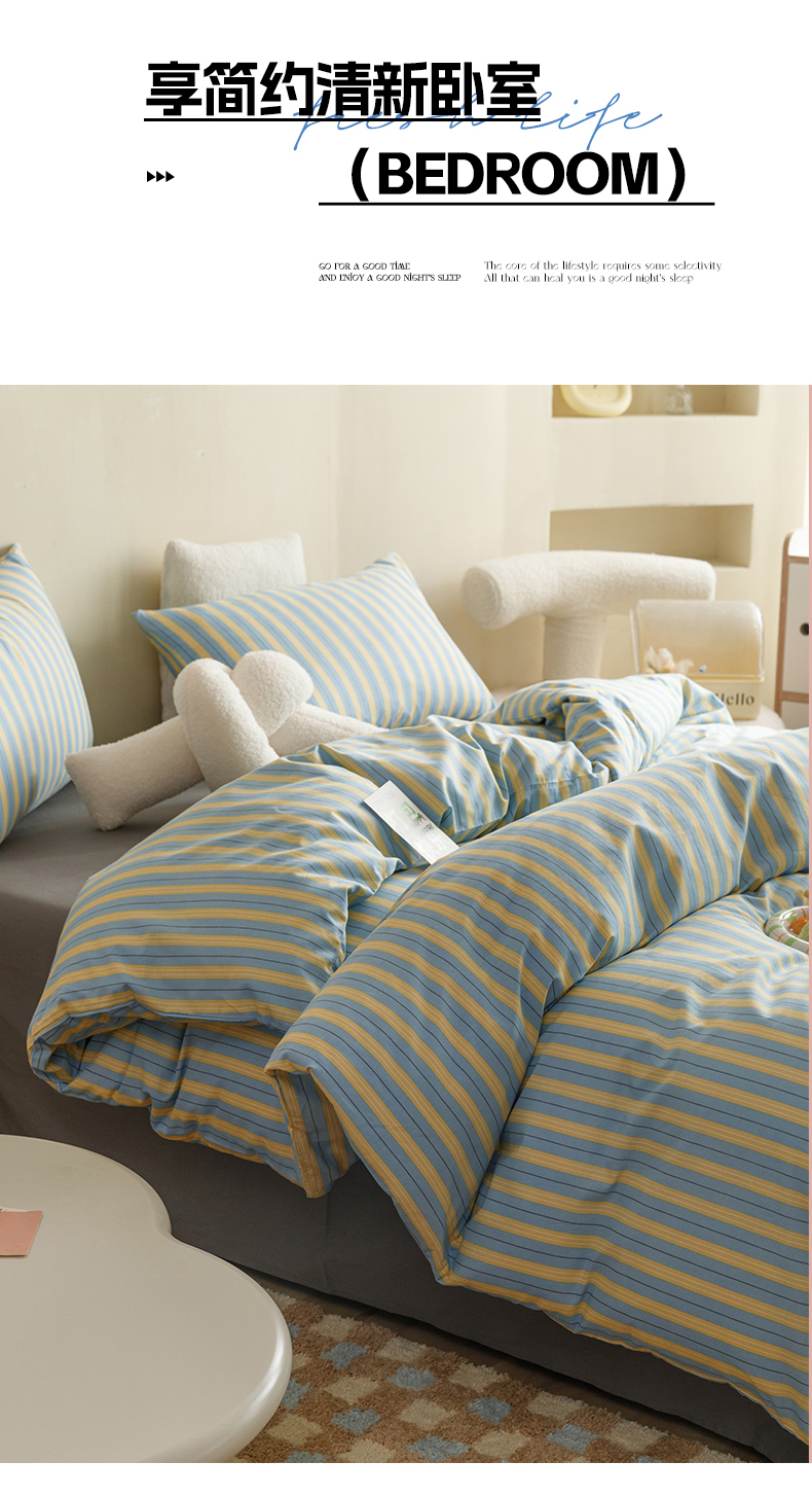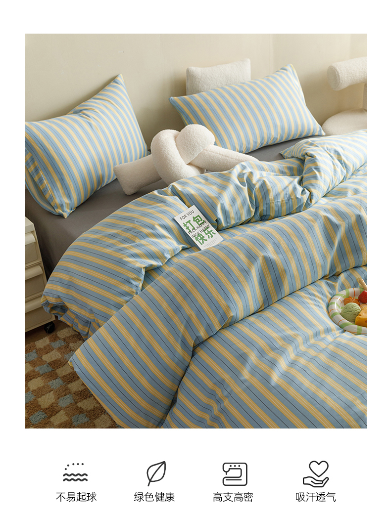 网客家纺 2024新款全棉条纹印花四件套 初夏