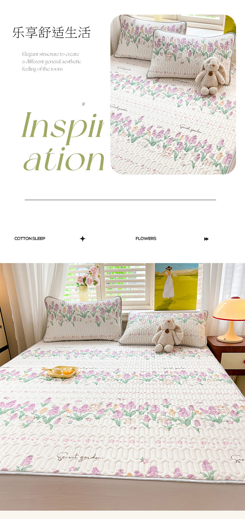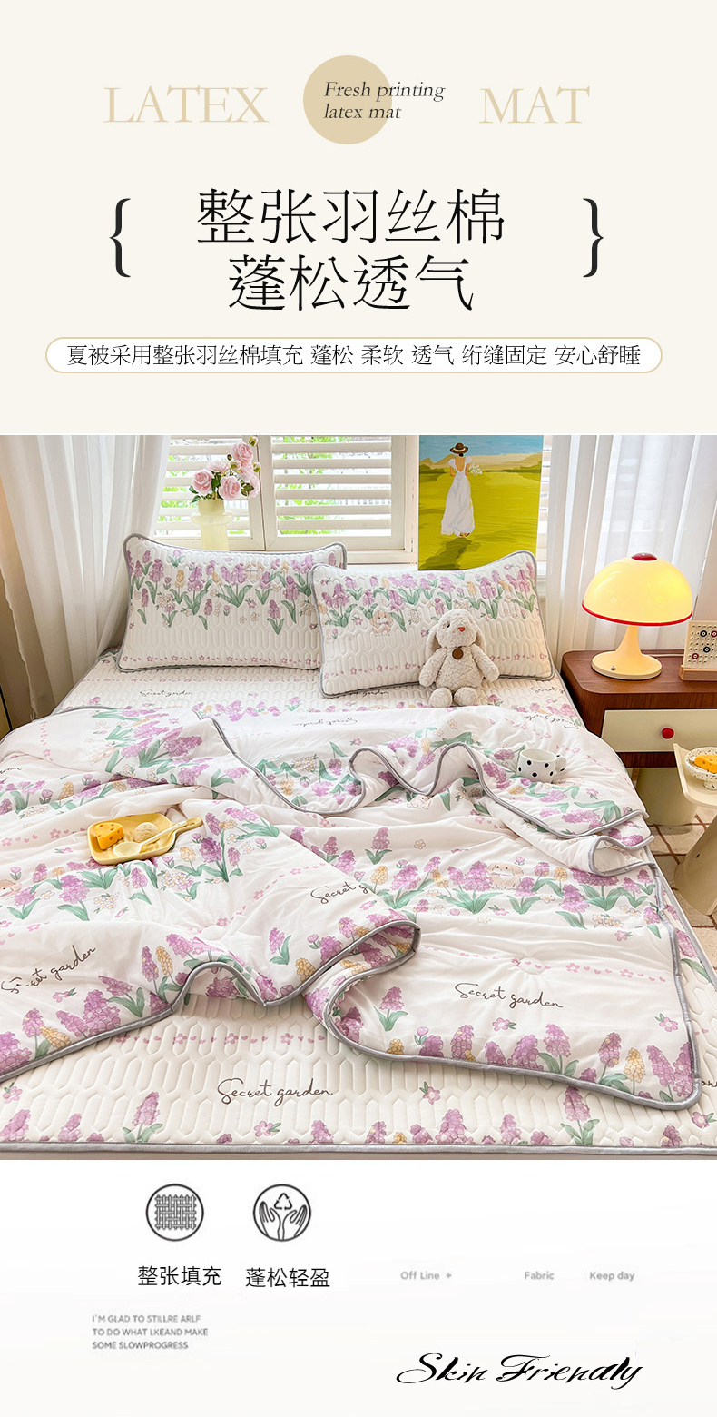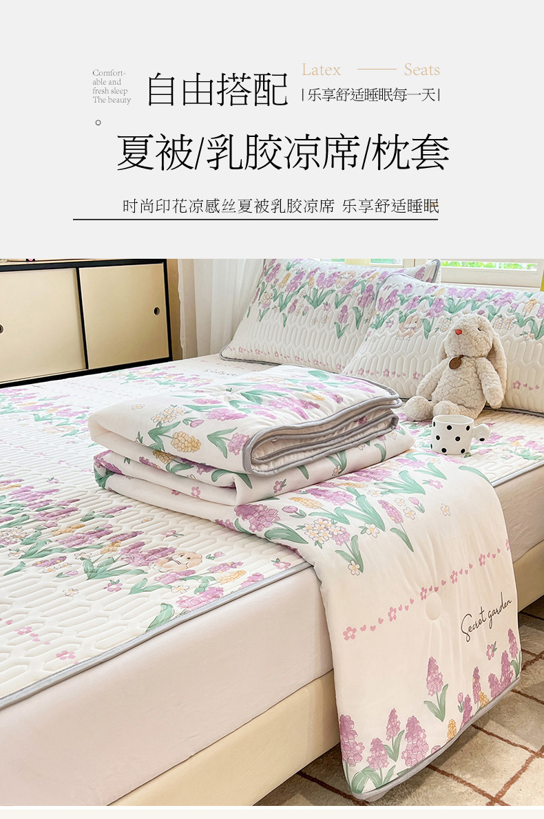 慕澄家纺 2024新款小版印花0.5乳胶凉席夏被四件套 紫色浪漫