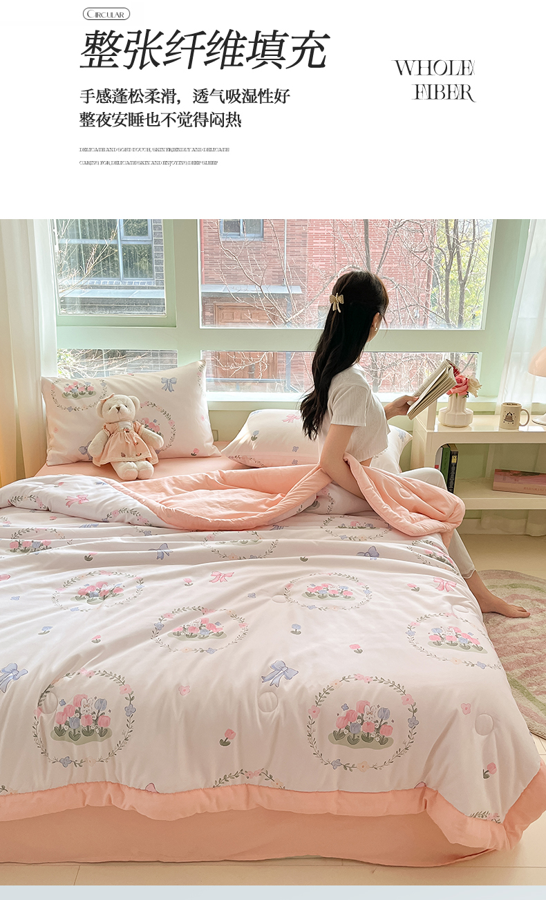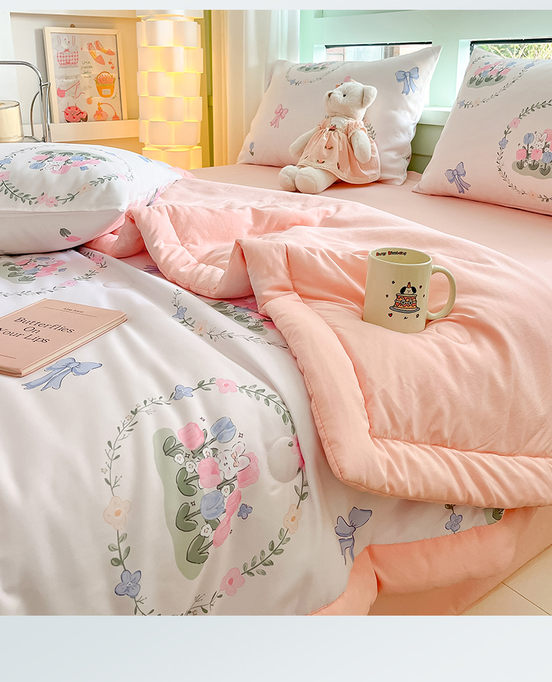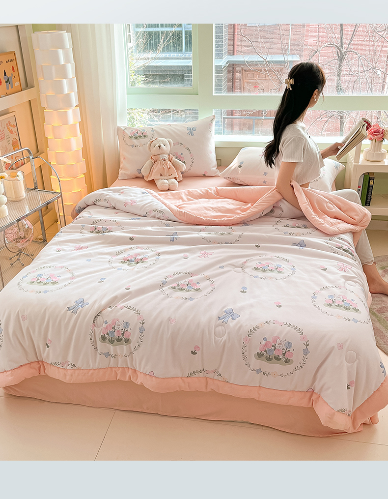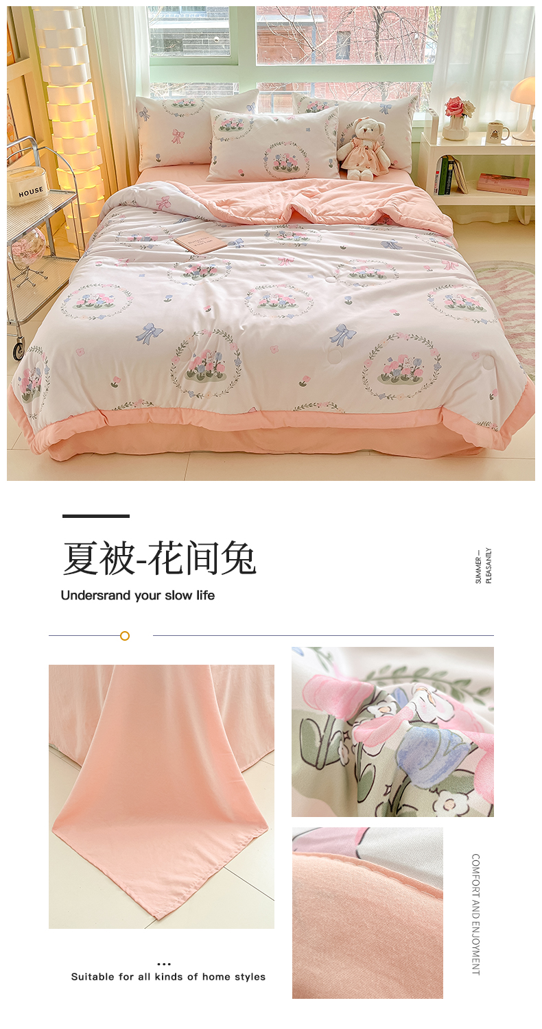 商品名称:古吉梦2024新款水洗棉小清新印花夏被被子被芯 夏被-花间兔