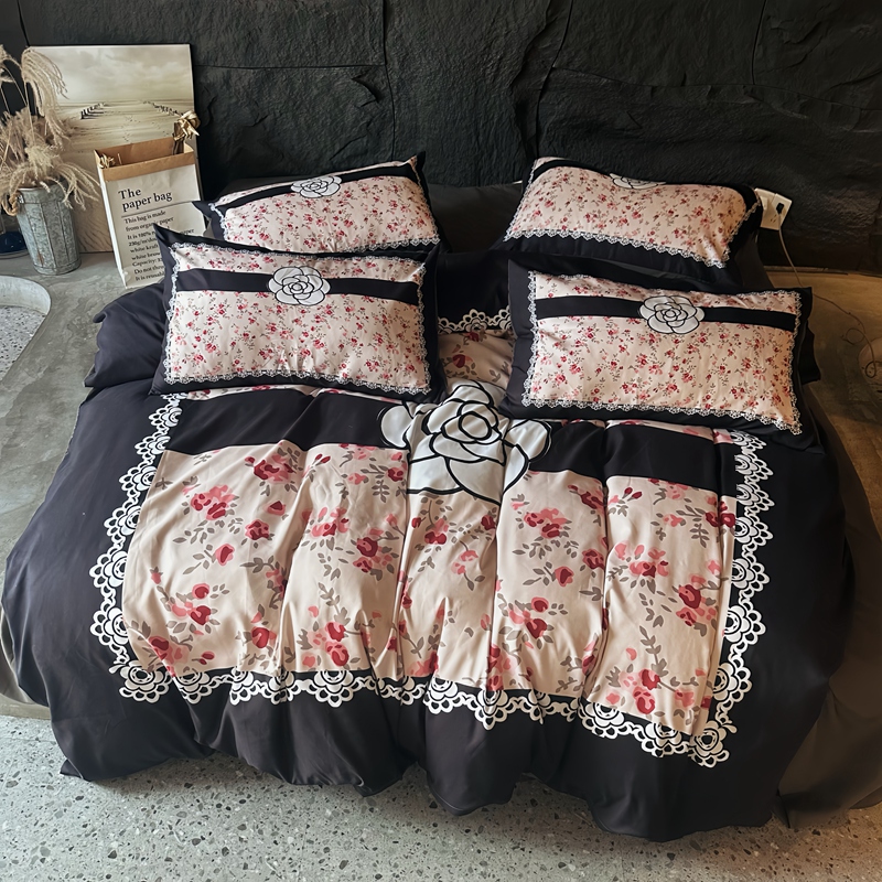 (总)丽斐纺织 2025新款水洗冰丝数码印花四件套,绿野,森林,巴宝,白山茶,彩蝶,格调,黑粉熊,黑色礼物,黑山茶,黑香,红玫瑰,灰丝豹,橘子洲,蓝熊,绿野仙踪,墨碟,寻彩熊,油画熊