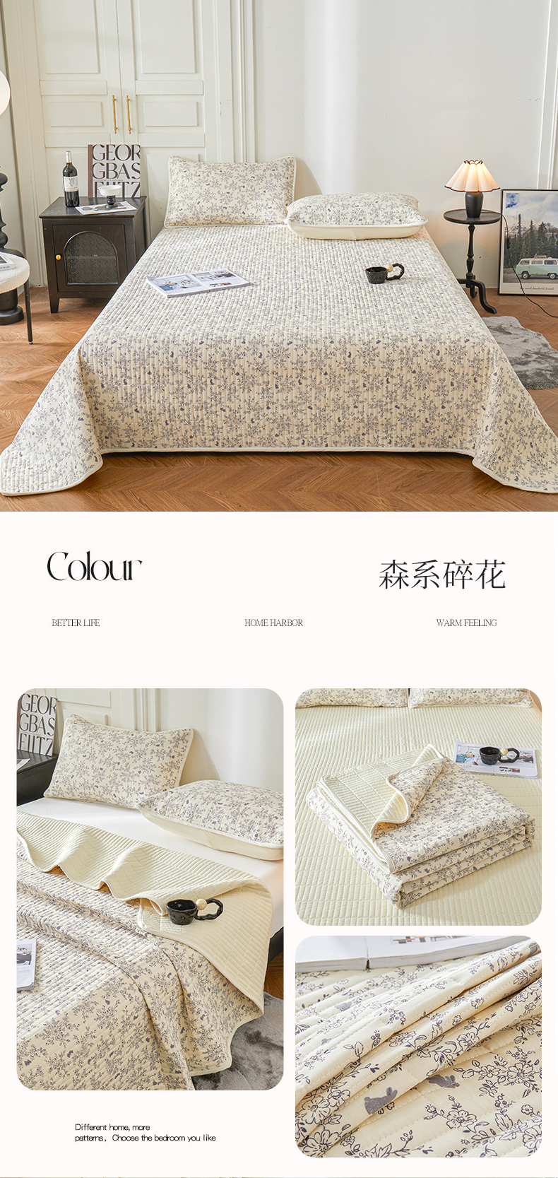 • 91家纺网 家纺一手货源 找家纺 雅萱家纺 2024新款全棉碎花床盖系列 森系碎花